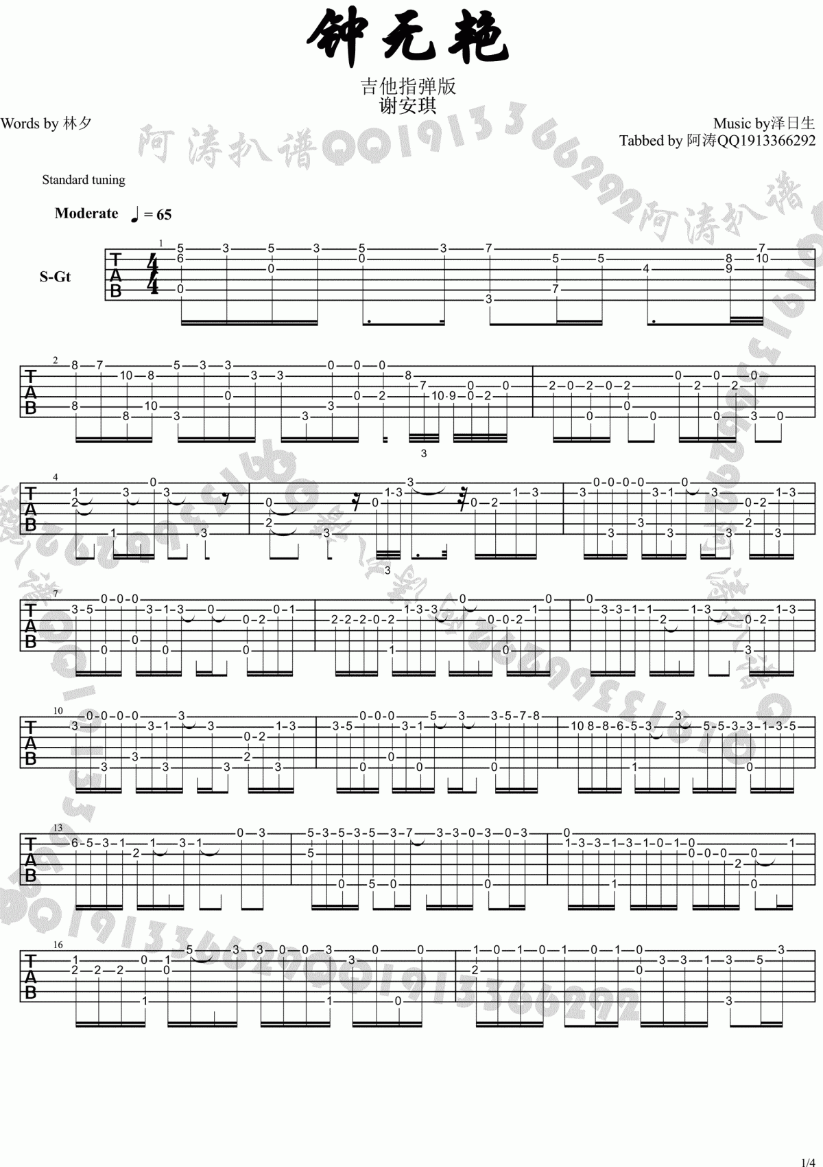曲谱介绍: 谢安琪《钟无艳》吉他独奏谱,共有4张高清图谱。