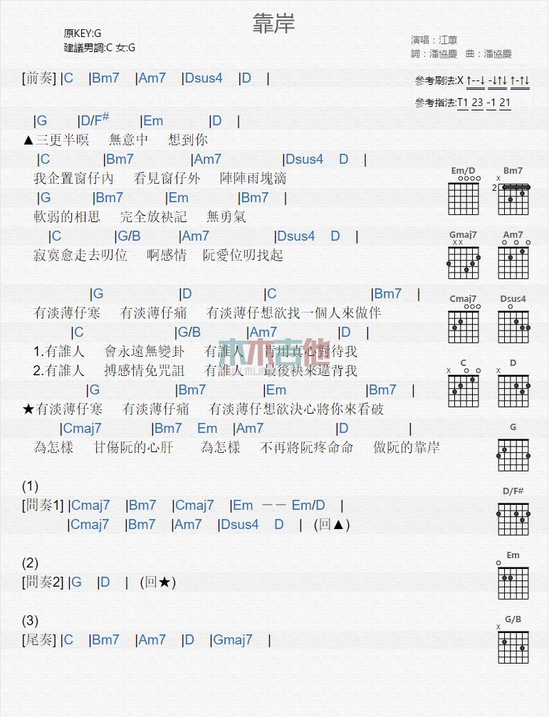 靠岸_吉他谱 - 靠岸 - 吉他弹唱谱