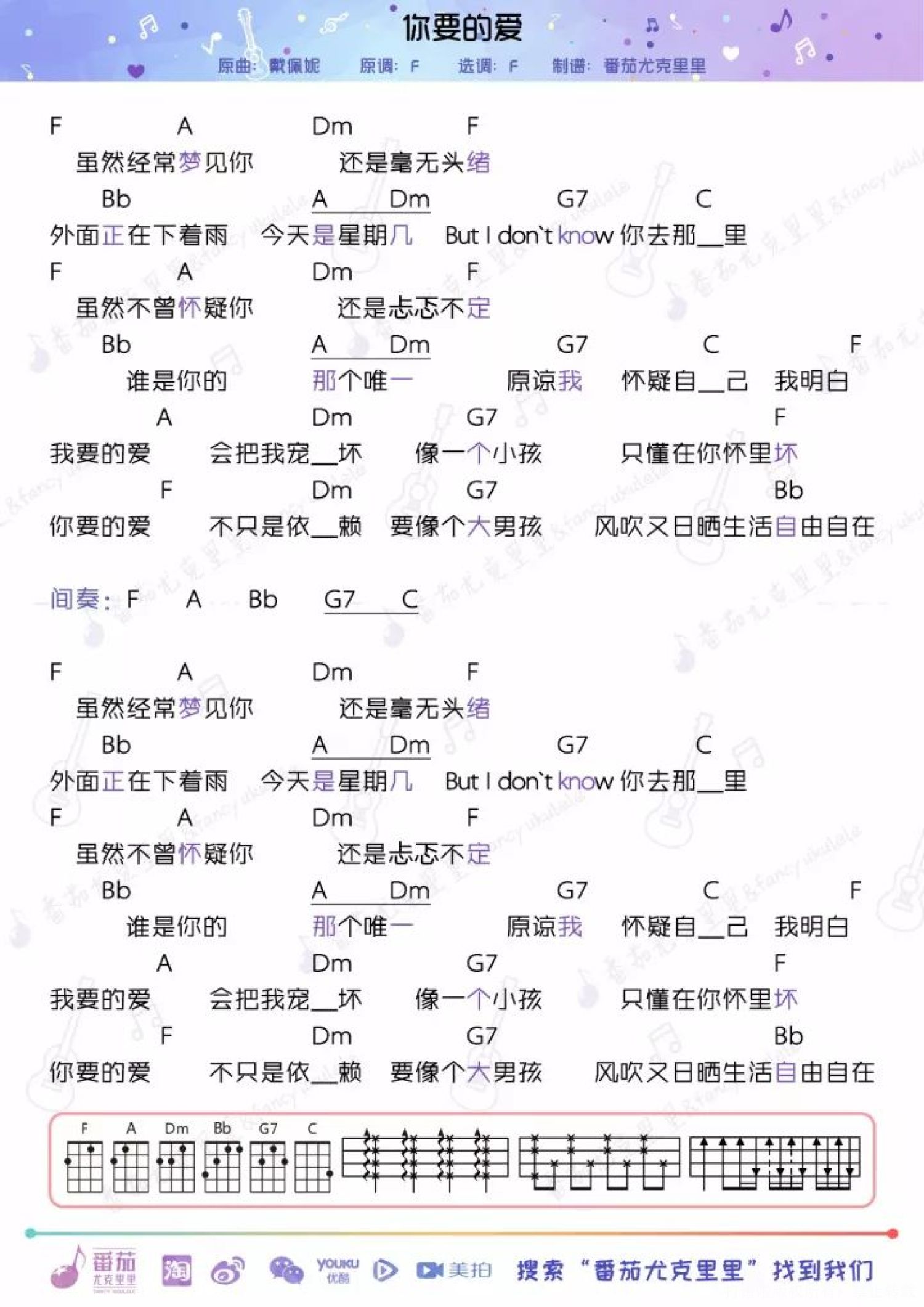 曲谱介绍: 《你要的爱》尤克里里弹唱谱