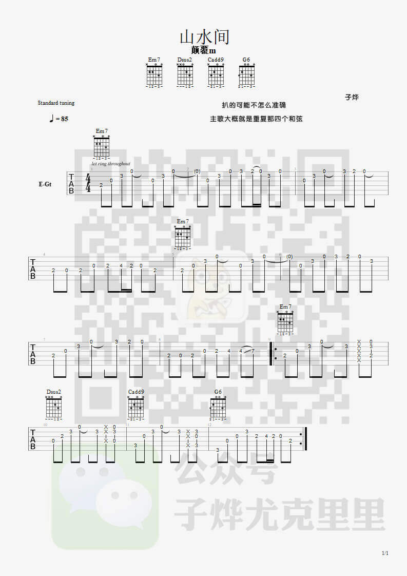 山水间吉他谱 - 颠覆M - 吉他弹唱谱