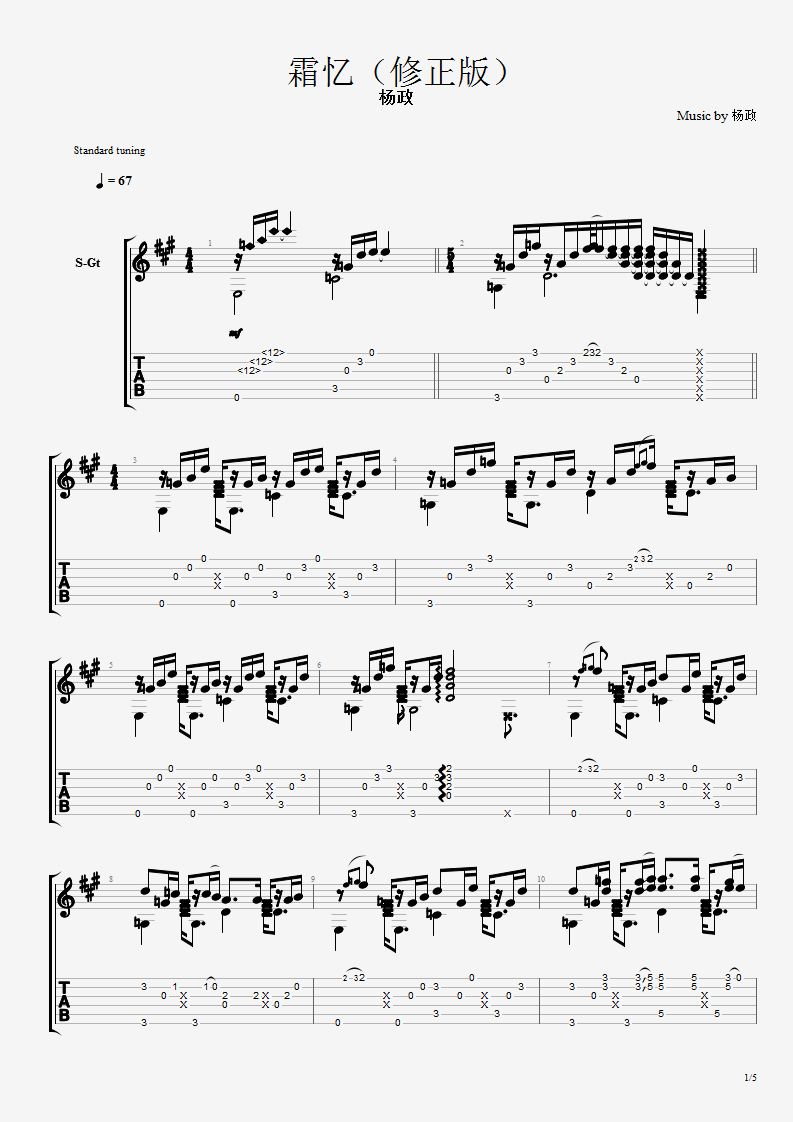 曲谱介绍: 霜忆杨政《霜忆杨政_版》吉他独奏谱,共有5张高清图谱。