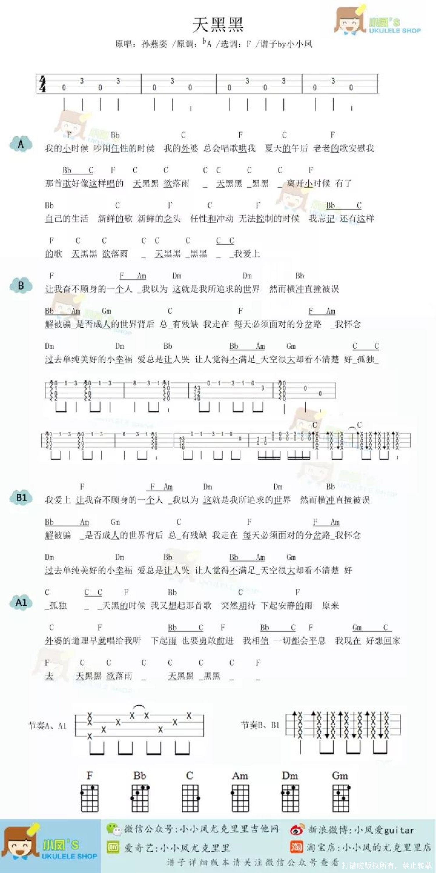 曲谱介绍: 小时候 总是吵闹着想要长大 总觉得长大很快乐 世界很美好 长大后 才知道成人的世界 有误解有欺骗有残缺 就算你任性横冲直撞头破血流 也再不会有人唱歌来哄你 成长必定会带来蜕变的痛苦与离开的酸楚 生活并不如我们小时候想象的美好 但 这就是人生 我们依然可以心怀小时候的美好 努力并勇敢的生活下去 一如最初外婆在歌声中教我们的那样   天黑黑演示 by 小小凤   天黑黑视频教程   天黑黑尤克里里谱