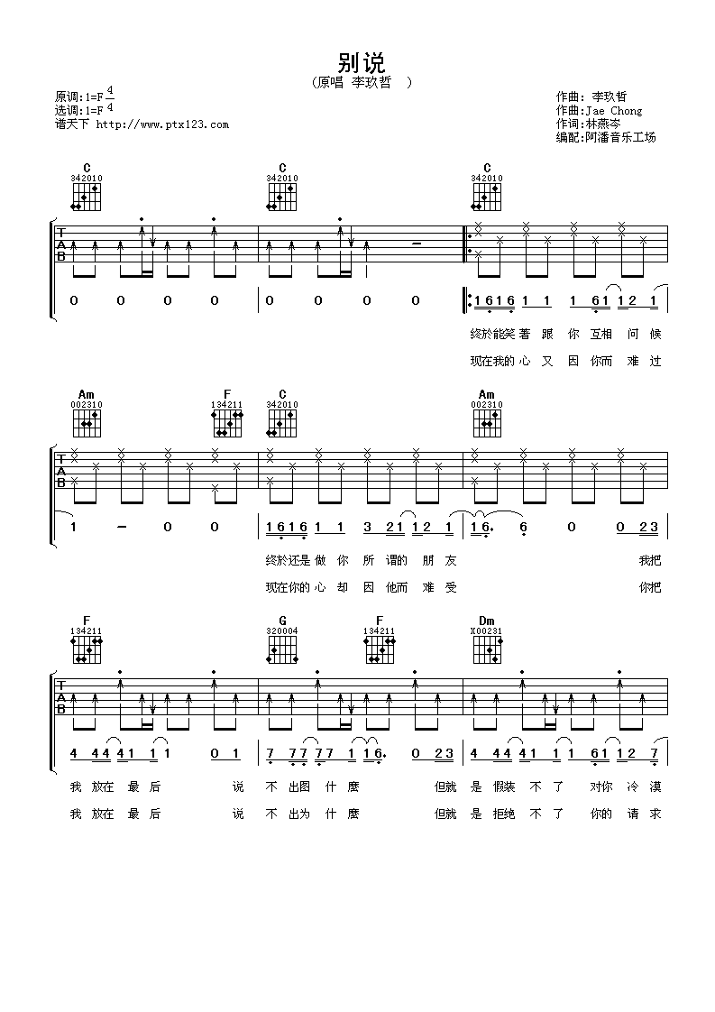 别说吉他谱 - 李玖哲 - F调吉他弹唱谱