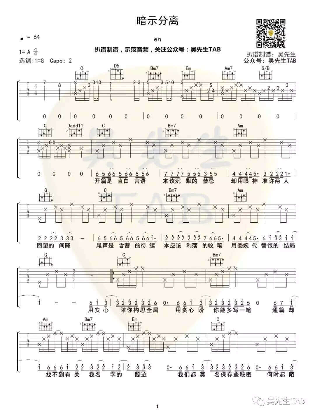 暗示分离吉他谱 - en - A调吉他弹唱谱