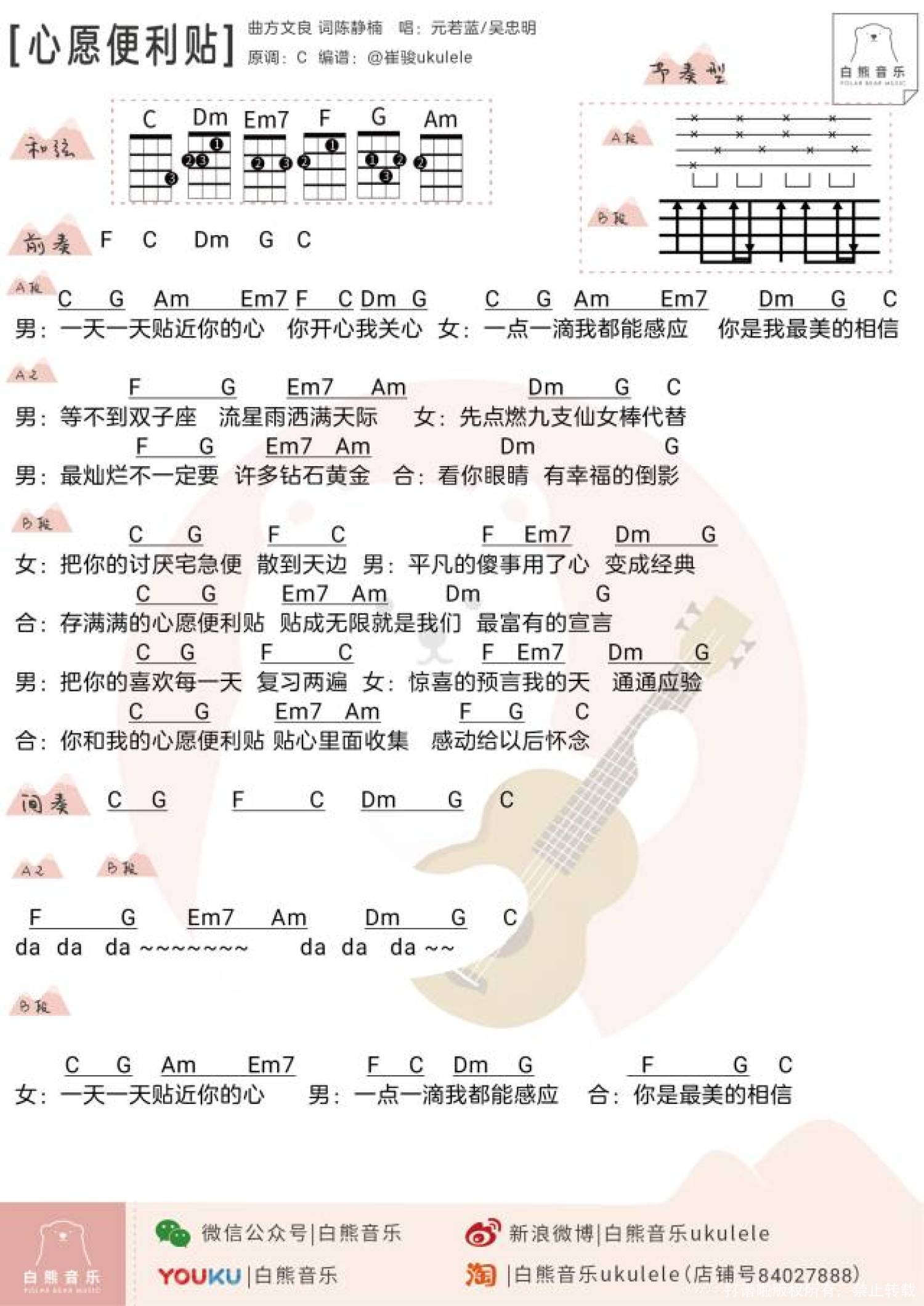 心愿便利贴尤克里里谱 - 吴忠明元若蓝