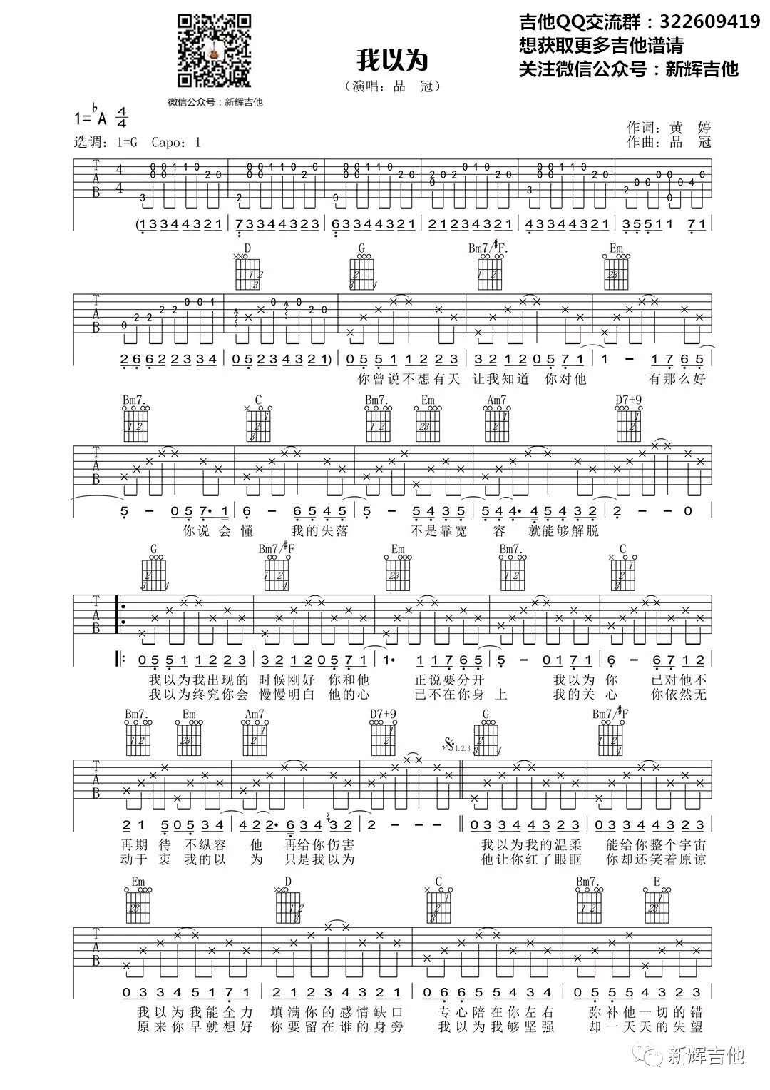 我以为_降A调吉他谱 - 我以为 - A调吉他弹唱谱