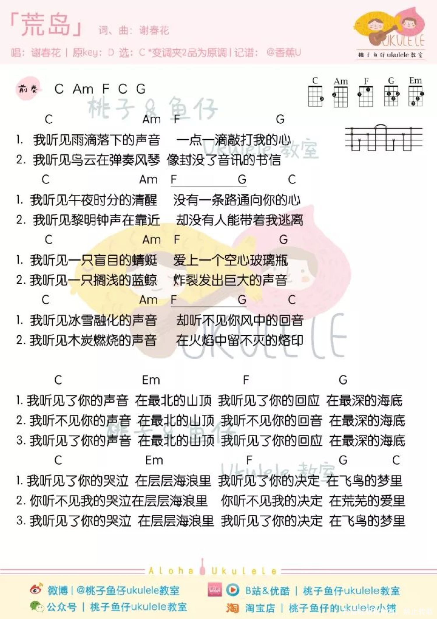 曲谱介绍: 《荒岛》尤克里里弹唱谱