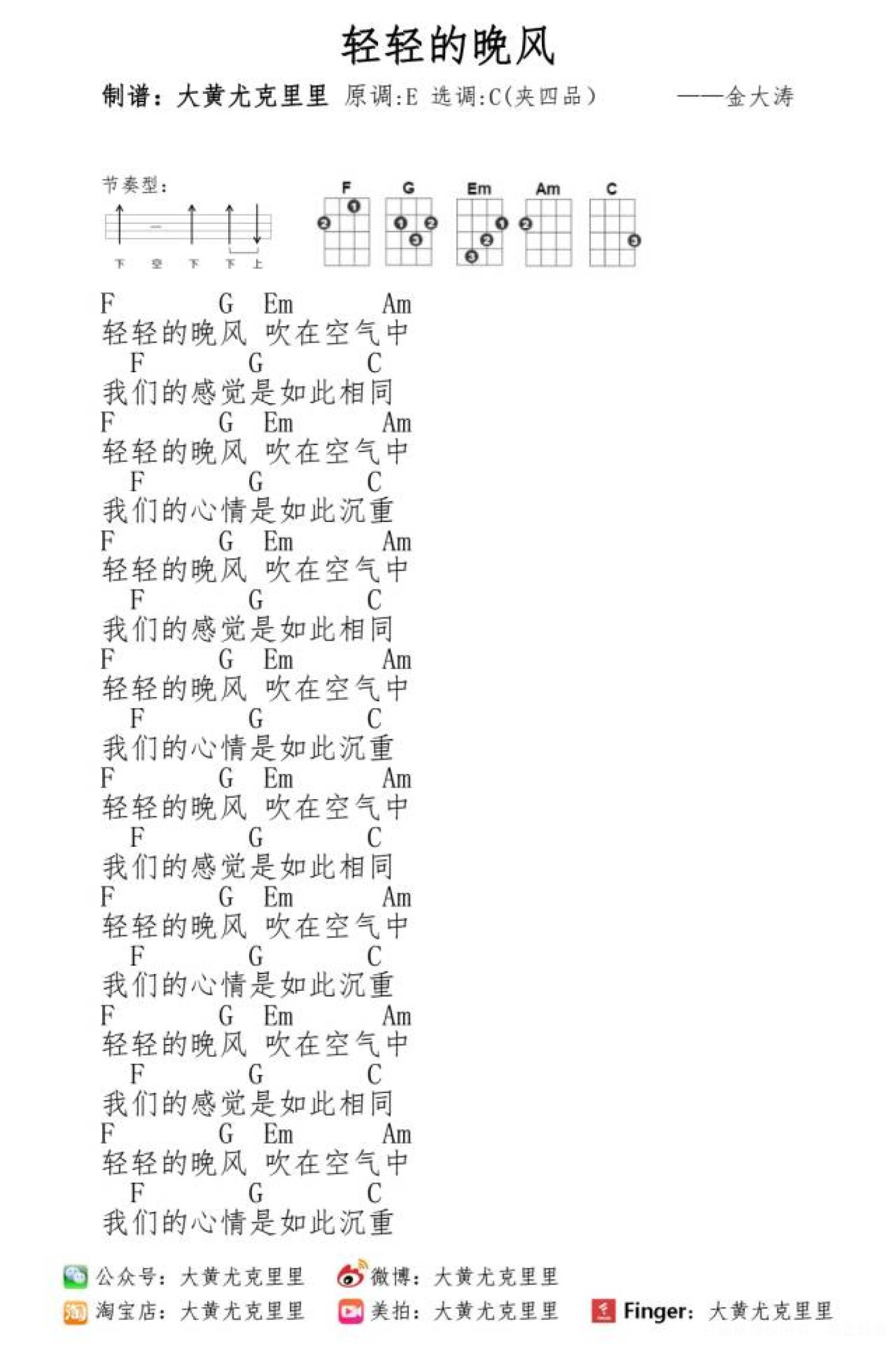 曲谱介绍: 《轻轻的晚风》尤克里里谱