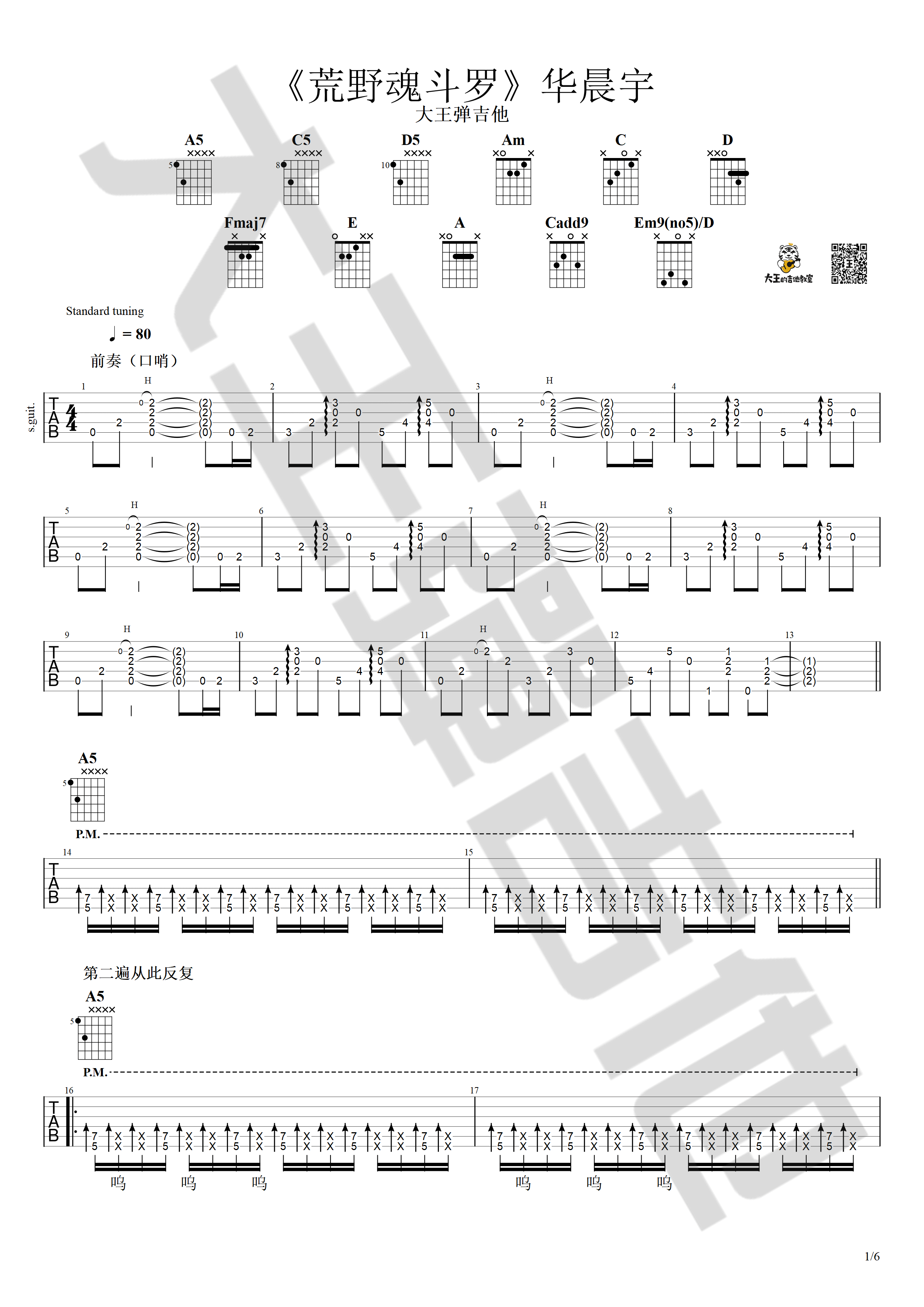 曲谱介绍: 荒野魂斗罗吉他谱采用了C调指法,由大王的弹吉他教室制谱。《代号魂斗罗》改编自游戏《魂斗罗》BGM,是华晨宇选取原曲素材重新创作的歌曲,而今天要给大家分享的这首《荒野魂斗罗》正是《代号魂斗罗》的2.0版本,去掉了复杂的电声乐器与说唱,带来的是耳目一新的不插电,这是一首热血燃歌,让我们听了燃力十足与沸腾热血,原作新编,重谱旋律,用华晨宇的歌声带领我们穿越未知荒岛,闯入荒野异次元。将并肩前行的真挚友情,融注在歌曲中,热血演绎真的有被帅到!这首是非题吉他谱也很帅,快点去学习吧,没学会的小伙伴要继续加油喔,稳! <iframe src="https://v.qq.com/txp/iframe/player.html?vid=b3074r1u8bw" width="880"</iframe> 吉他弹唱演示及视频教学 <iframe src="https://v.qq.com/txp/iframe/player.html?vid=b3074r1u8bw" width="880"</iframe> 吉他弹唱演示及视频教学