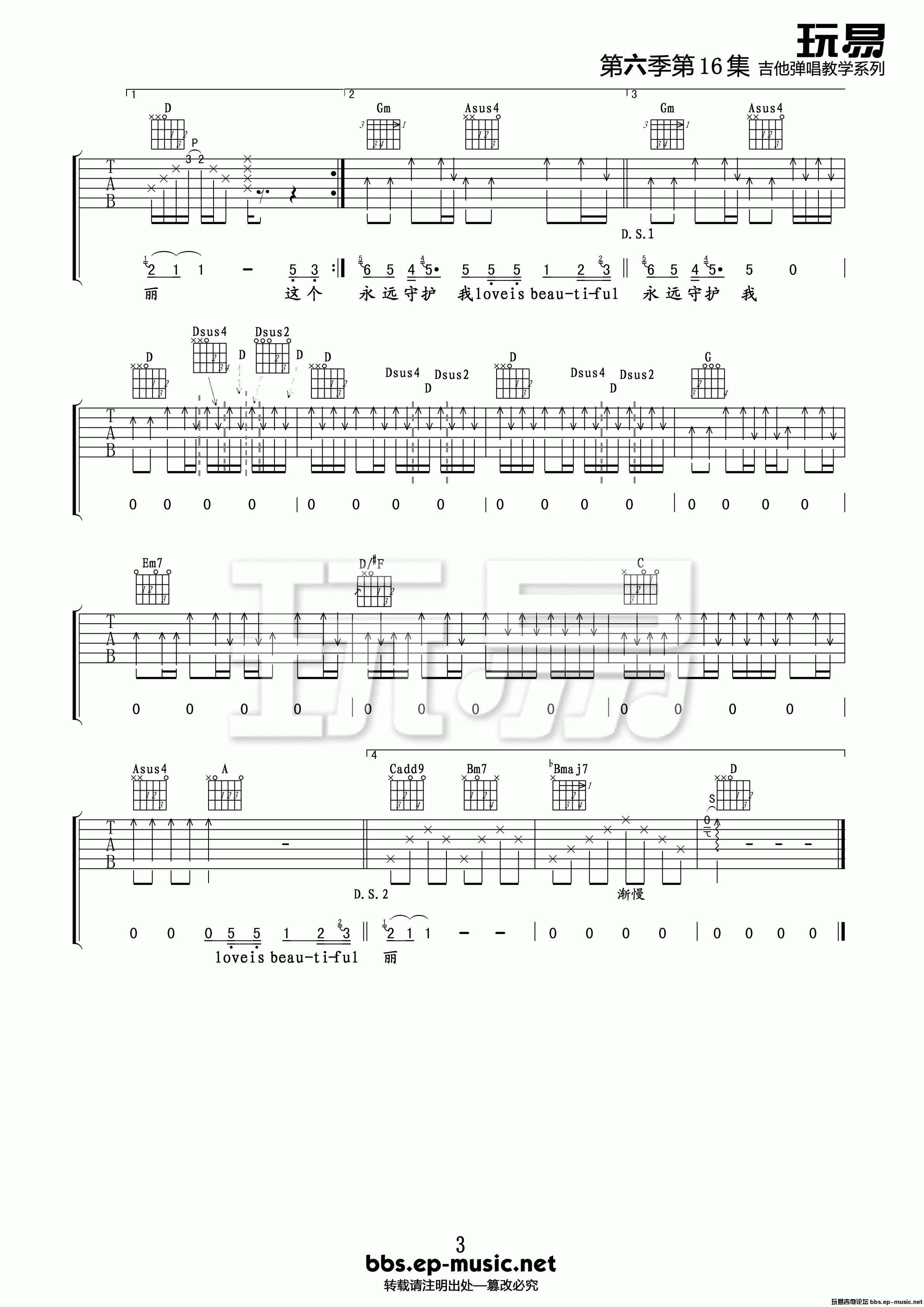吉他弹唱D调来源:玩易吉他277 浏览2024-01-29 16:54发布图谱共3页