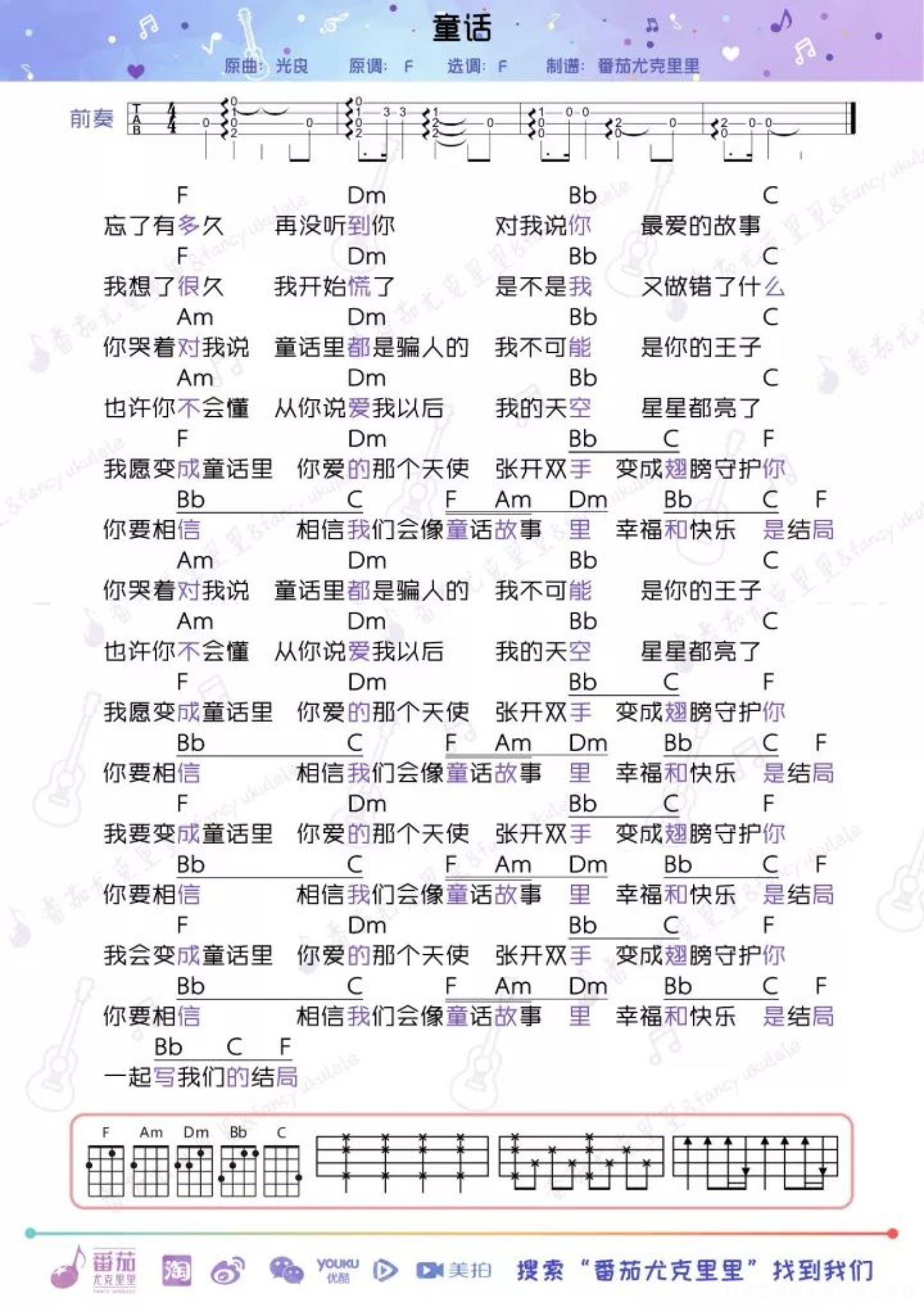 曲谱介绍: 弹唱教学   童话 尤克里里谱