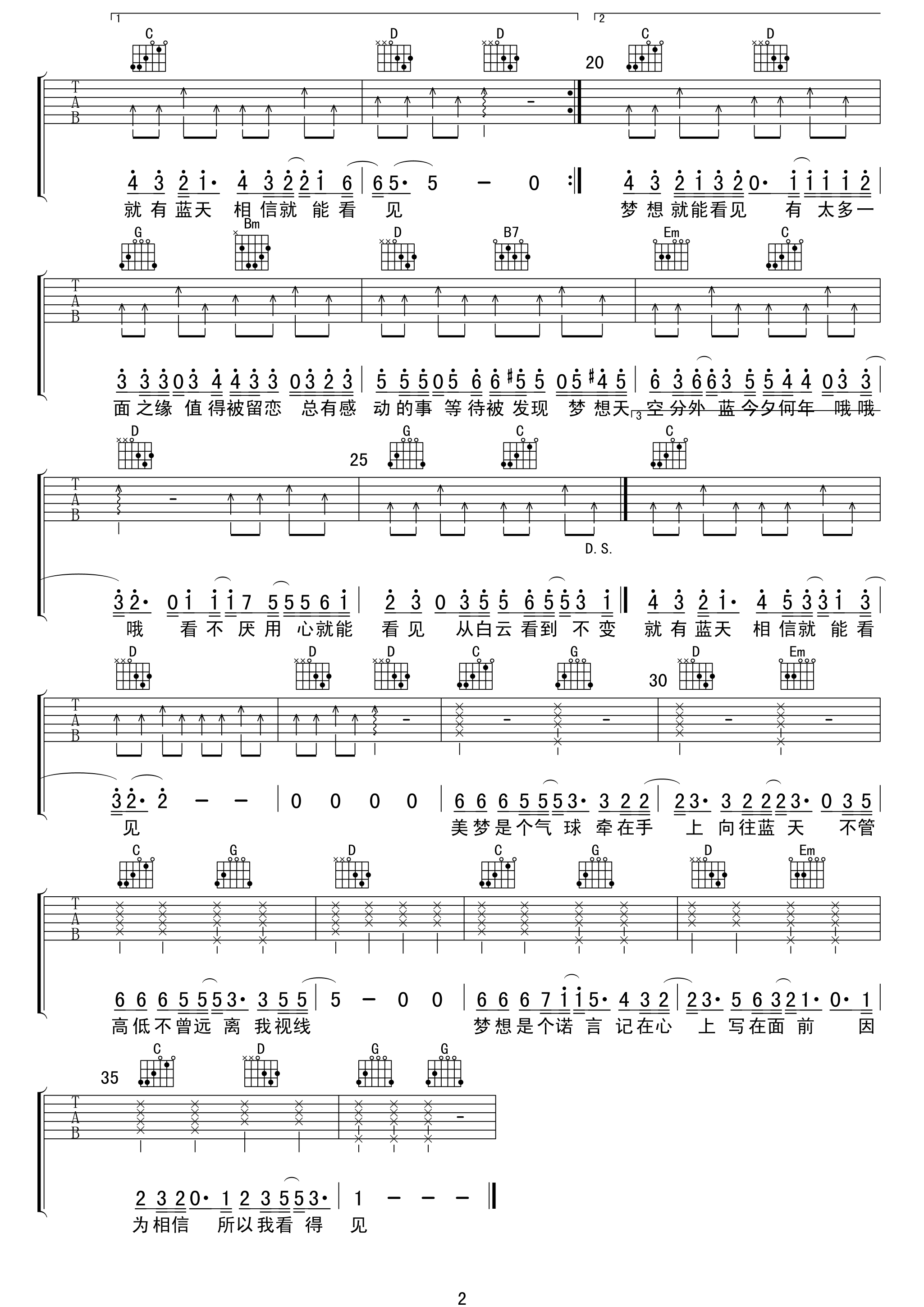 琴谱网为您精心推荐 梦想天空分外蓝 高清图谱