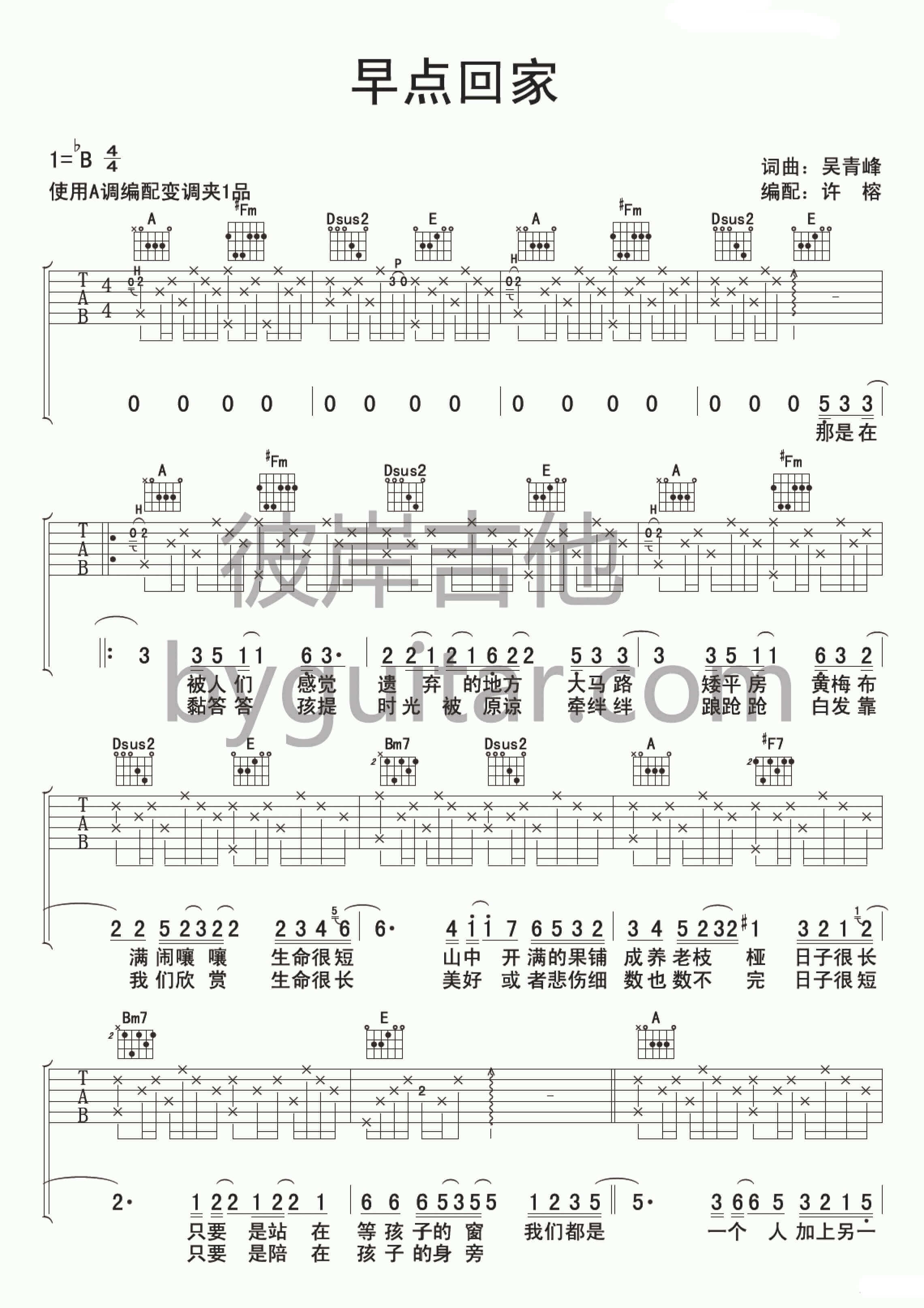 当前位置:琴谱网>吉他弹唱>早点回家
