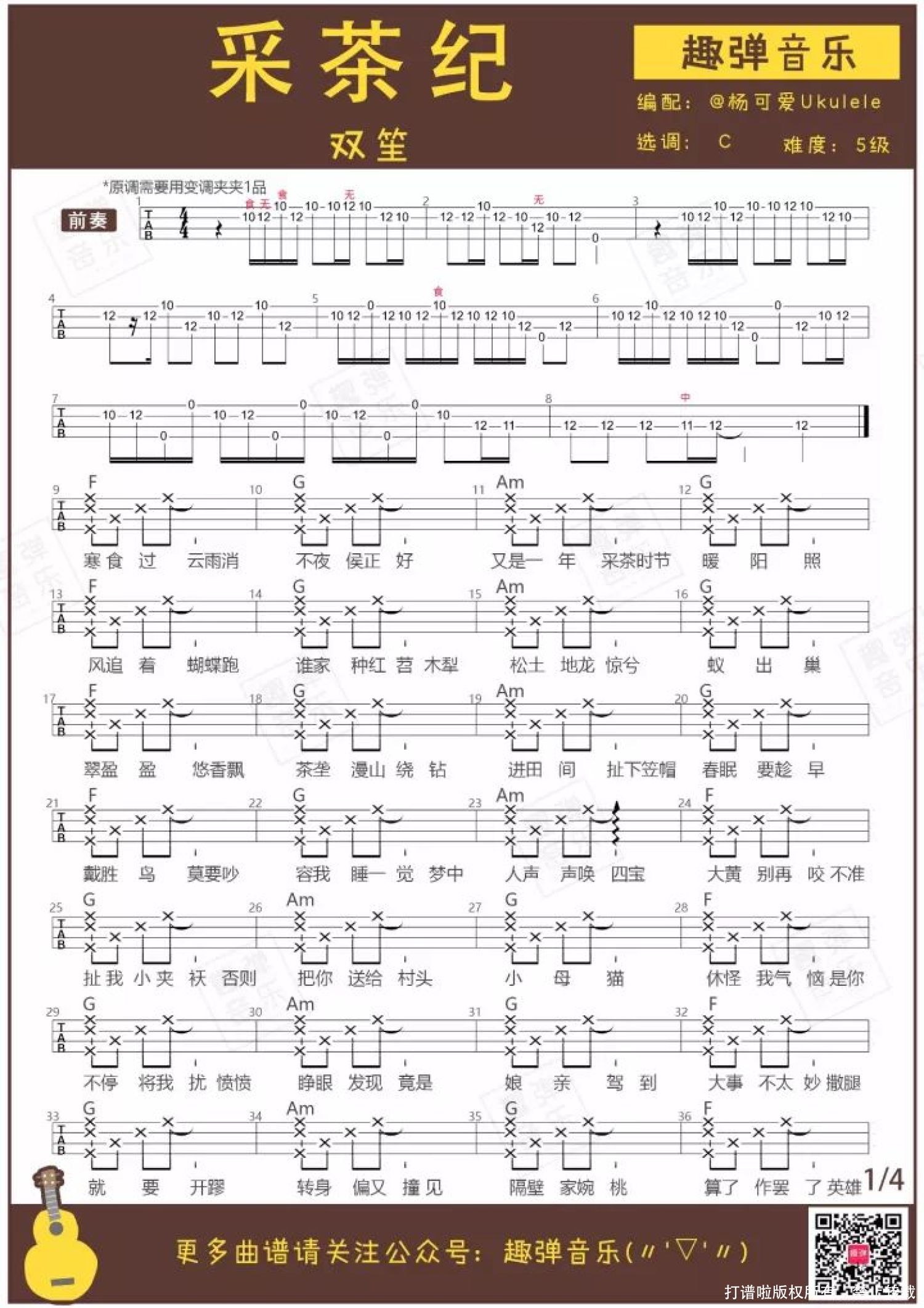 采茶纪ukulele弹唱谱
