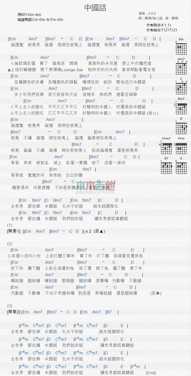中国话_吉他谱 - 中国话 - 吉他弹唱谱