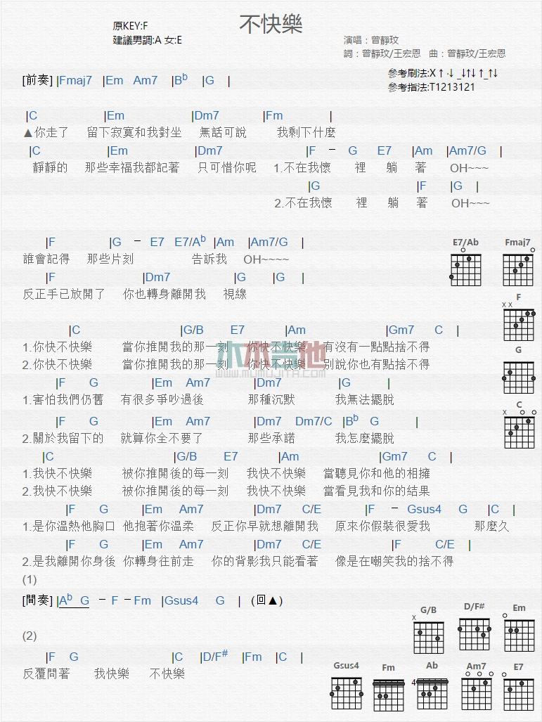 曲谱介绍: 不快乐《不快乐_》吉他弹唱谱,共有1张高清图谱,免翻页排版设计。
