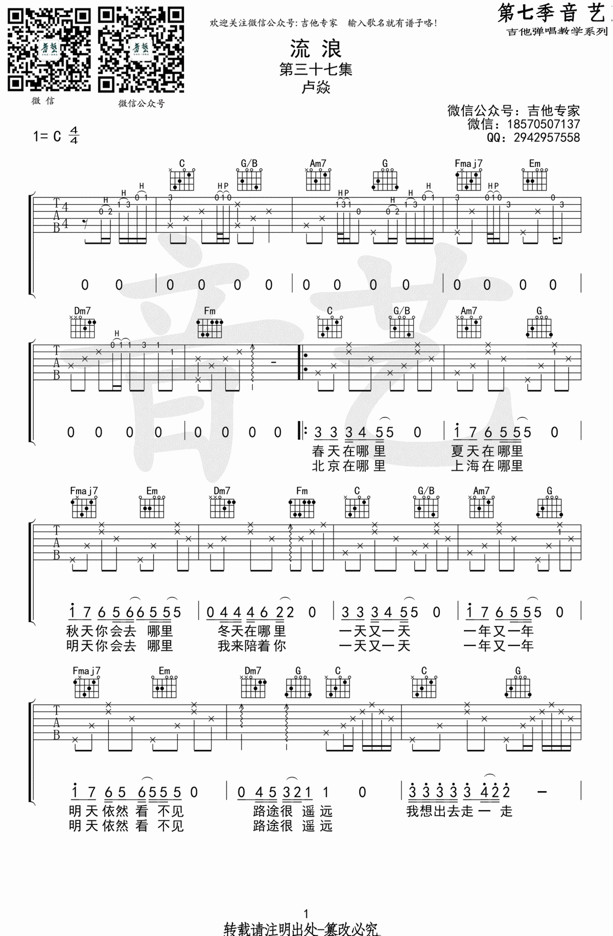 流浪_C调吉他谱 - 流浪 - C调吉他弹唱谱