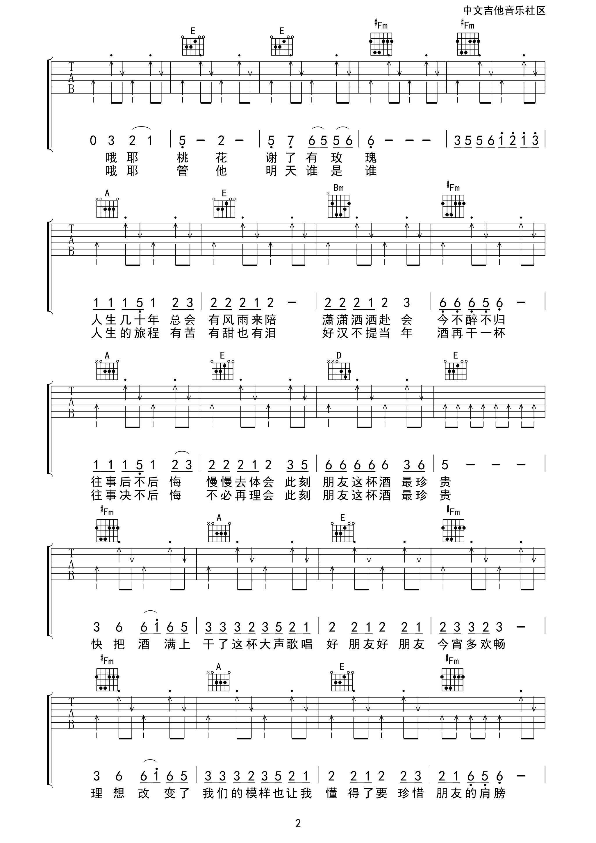 琴谱网为您精心推荐 朋友的酒 高清图谱