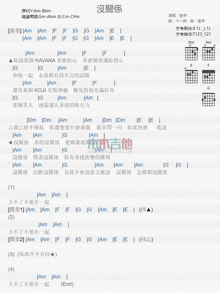 没关系_吉他谱 - 没关系 - 吉他弹唱谱