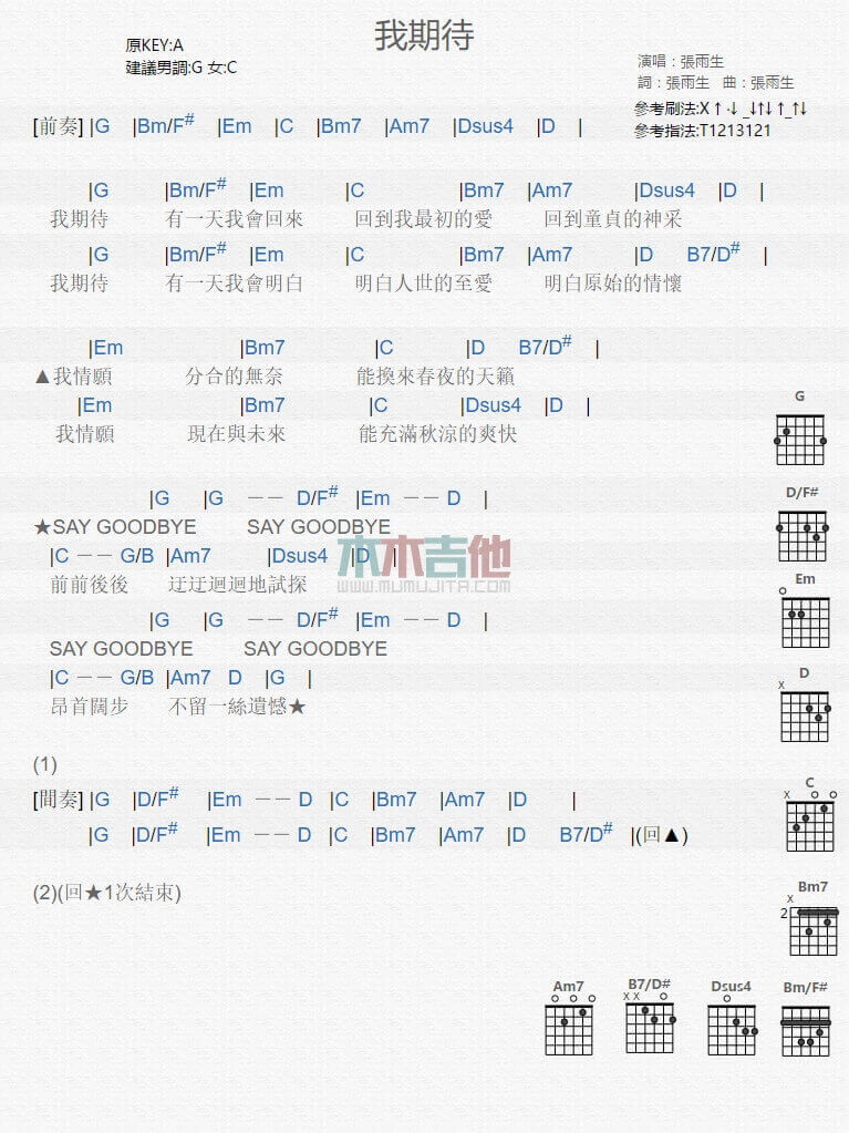 当前位置:琴谱网>吉他弹唱>我期待