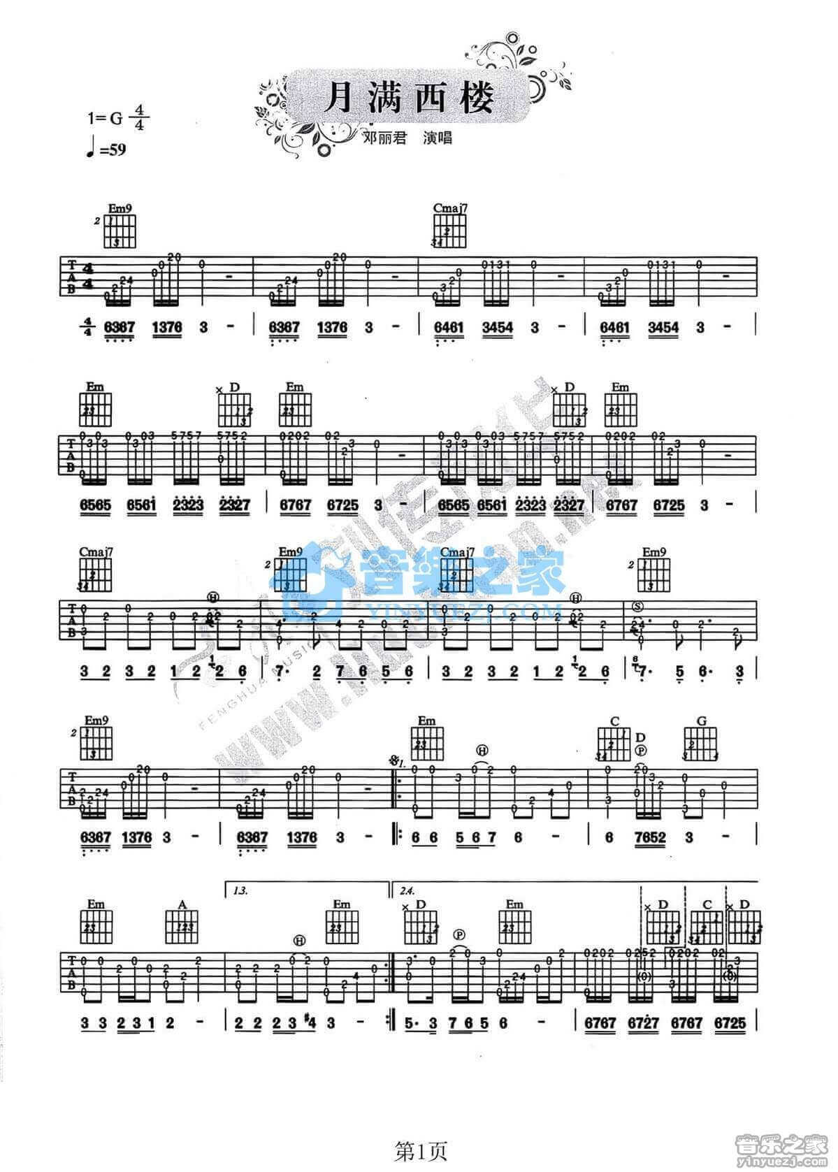 月满西楼吉他谱 - 邓丽君 - G调吉他独奏谱