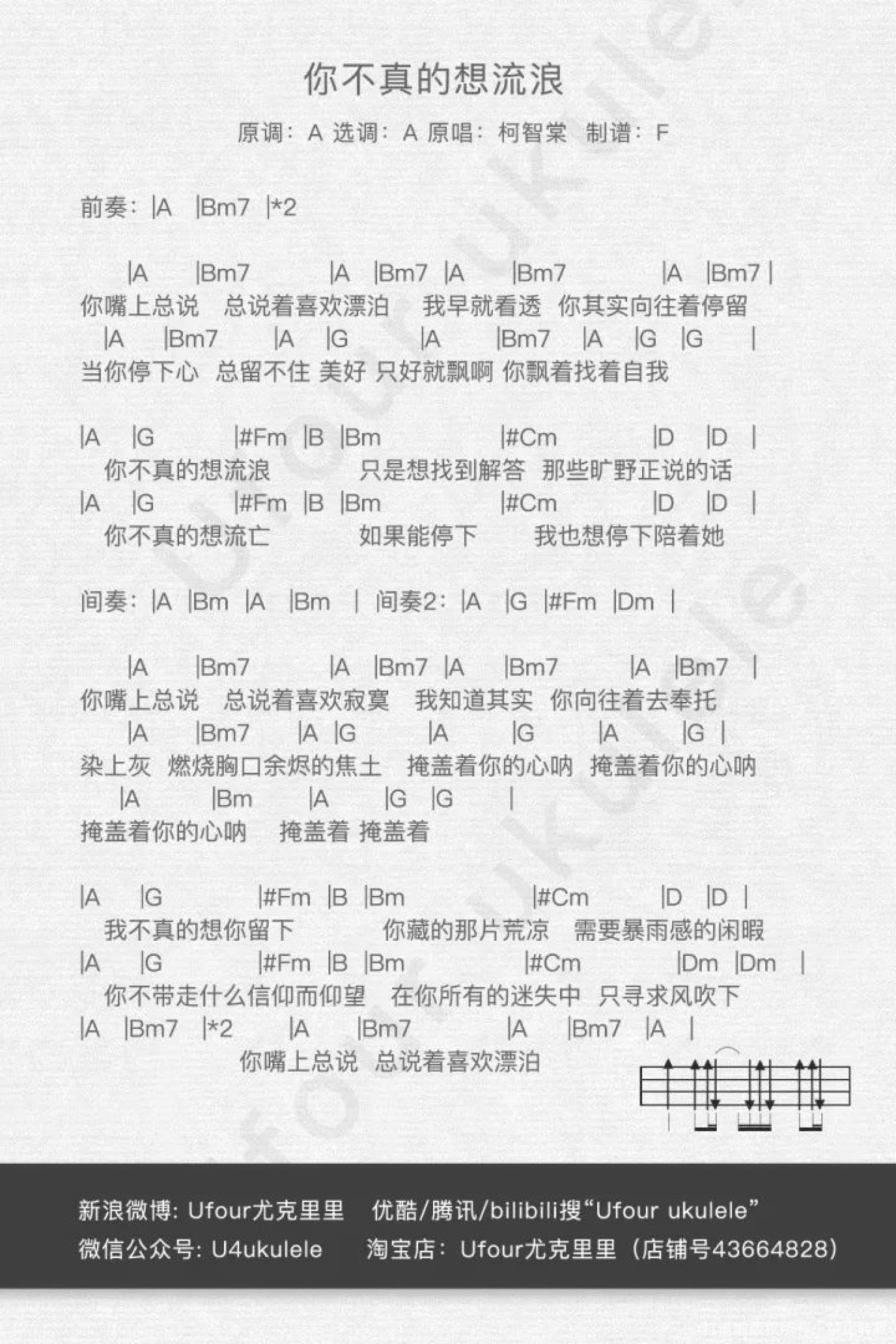 你不真的想流浪尤克里里谱 - 柯智棠