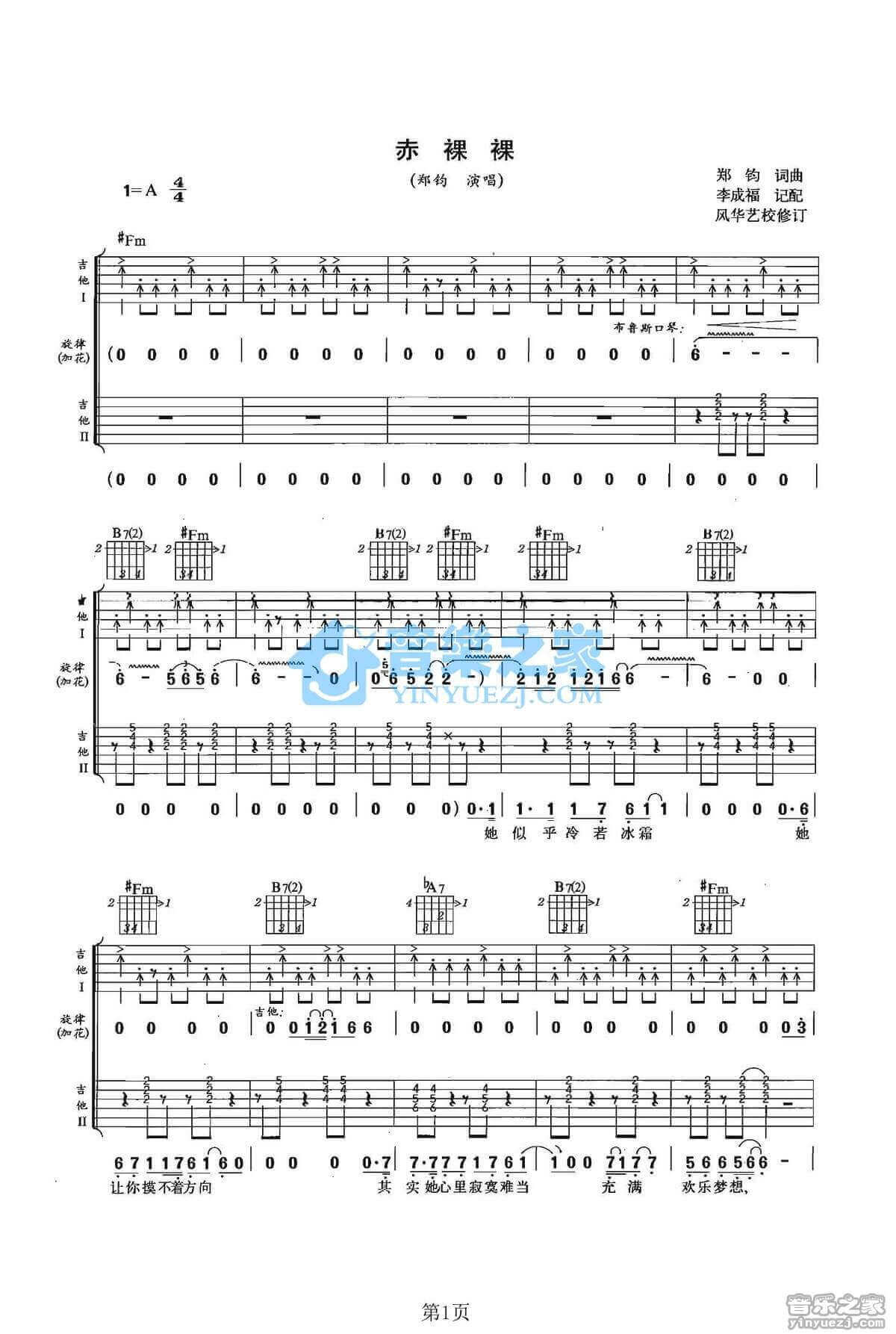 当前位置:琴谱网>吉他弹唱>赤裸裸