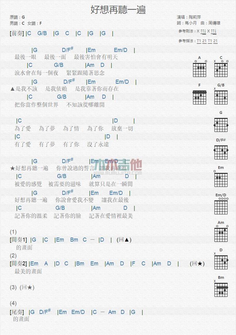 好想再听一遍_吉他谱 - 好想再听一遍 - 吉他弹唱谱