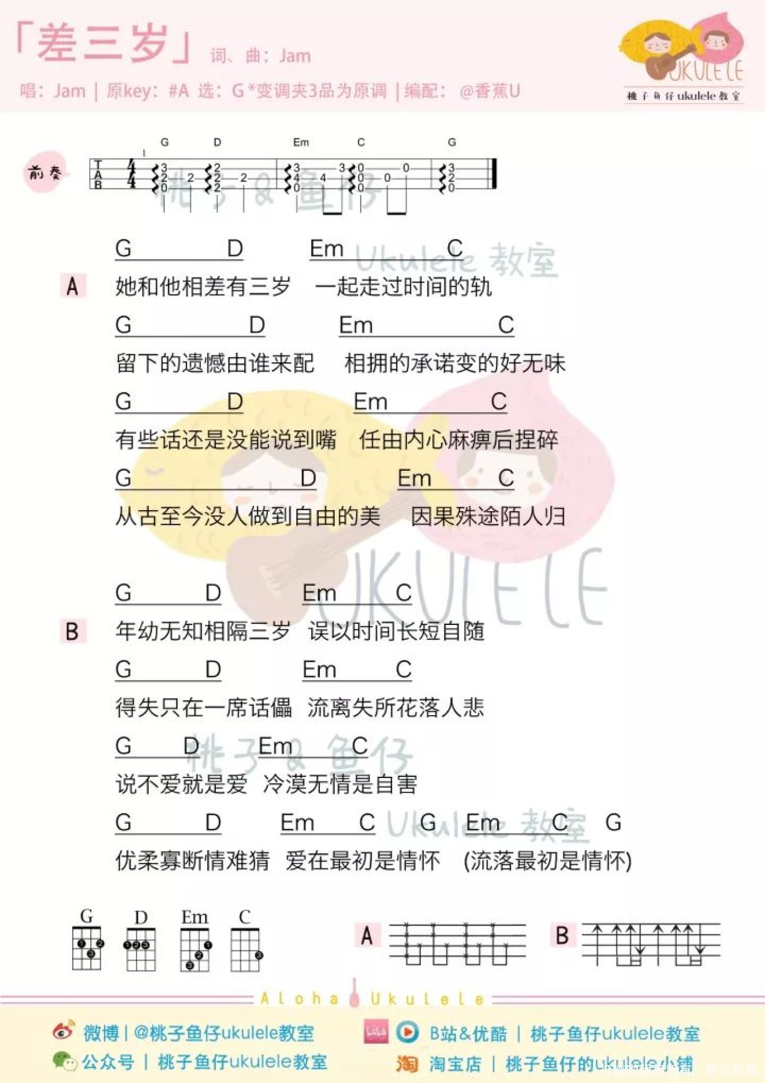 差三岁尤克里里谱 - JAM