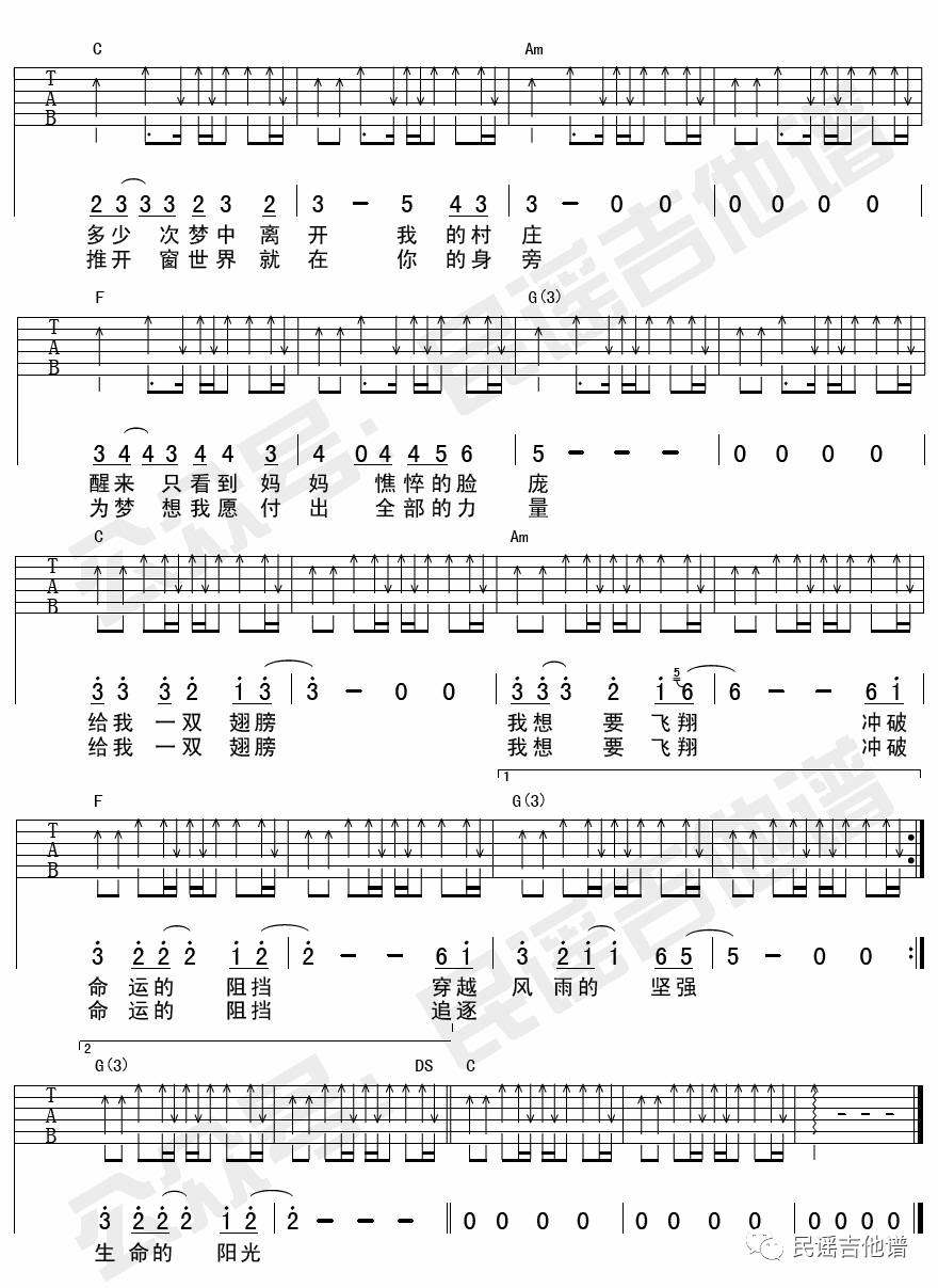 曲谱介绍: 给我一双翅膀《给我一双翅膀水木年华》吉他弹唱谱,共有3张高清图谱。
