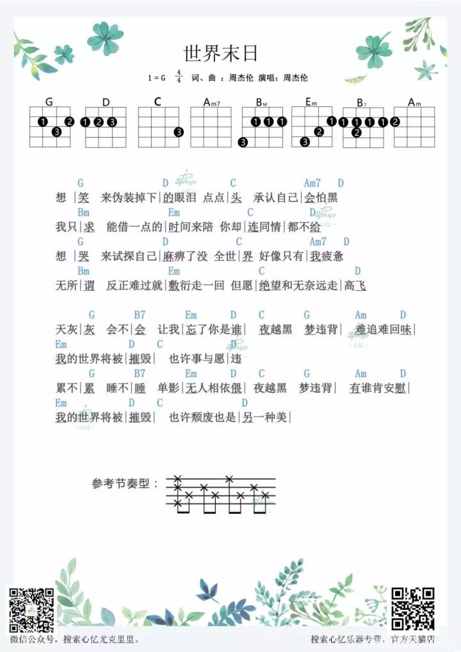 曲谱介绍: 《世界末日》尤克里里弹唱谱