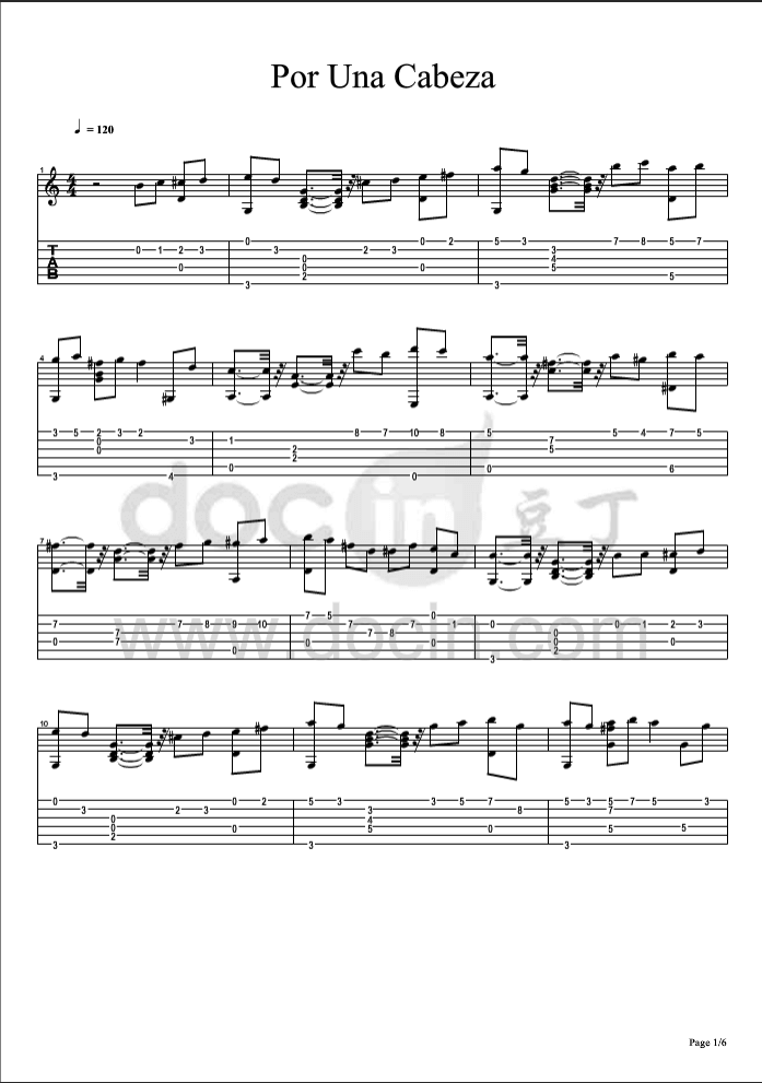 Por Una Cabeza吉他谱 - Por - 吉他独奏谱