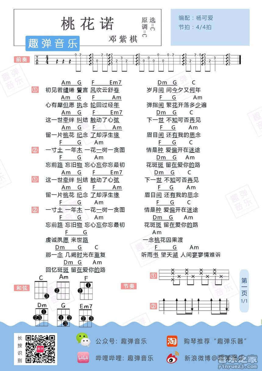 桃花诺吉他谱 - 邓紫棋 - C调吉他弹唱谱