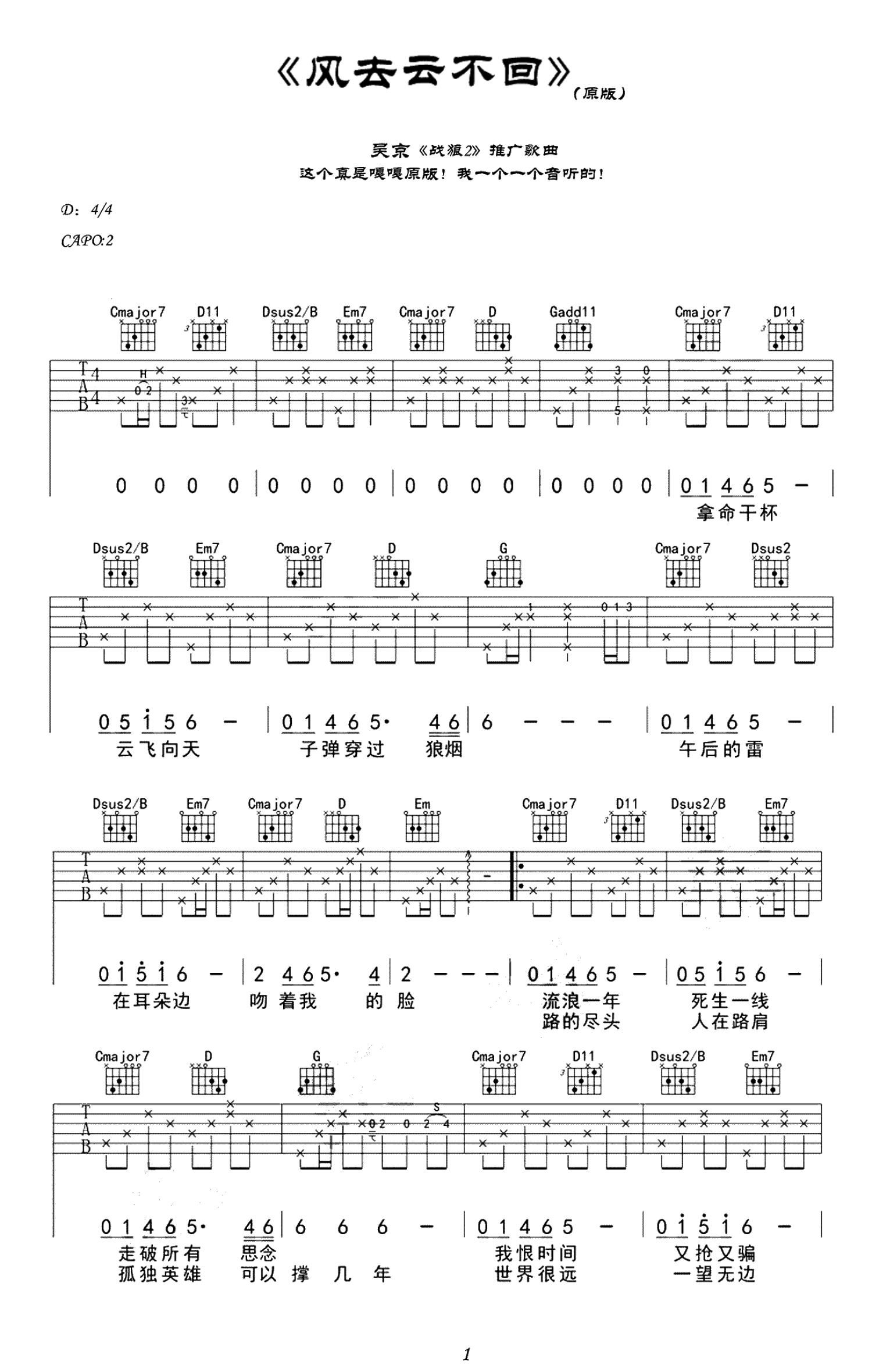 风去云不回吉他谱 - 吴京 - 吉他弹唱谱
