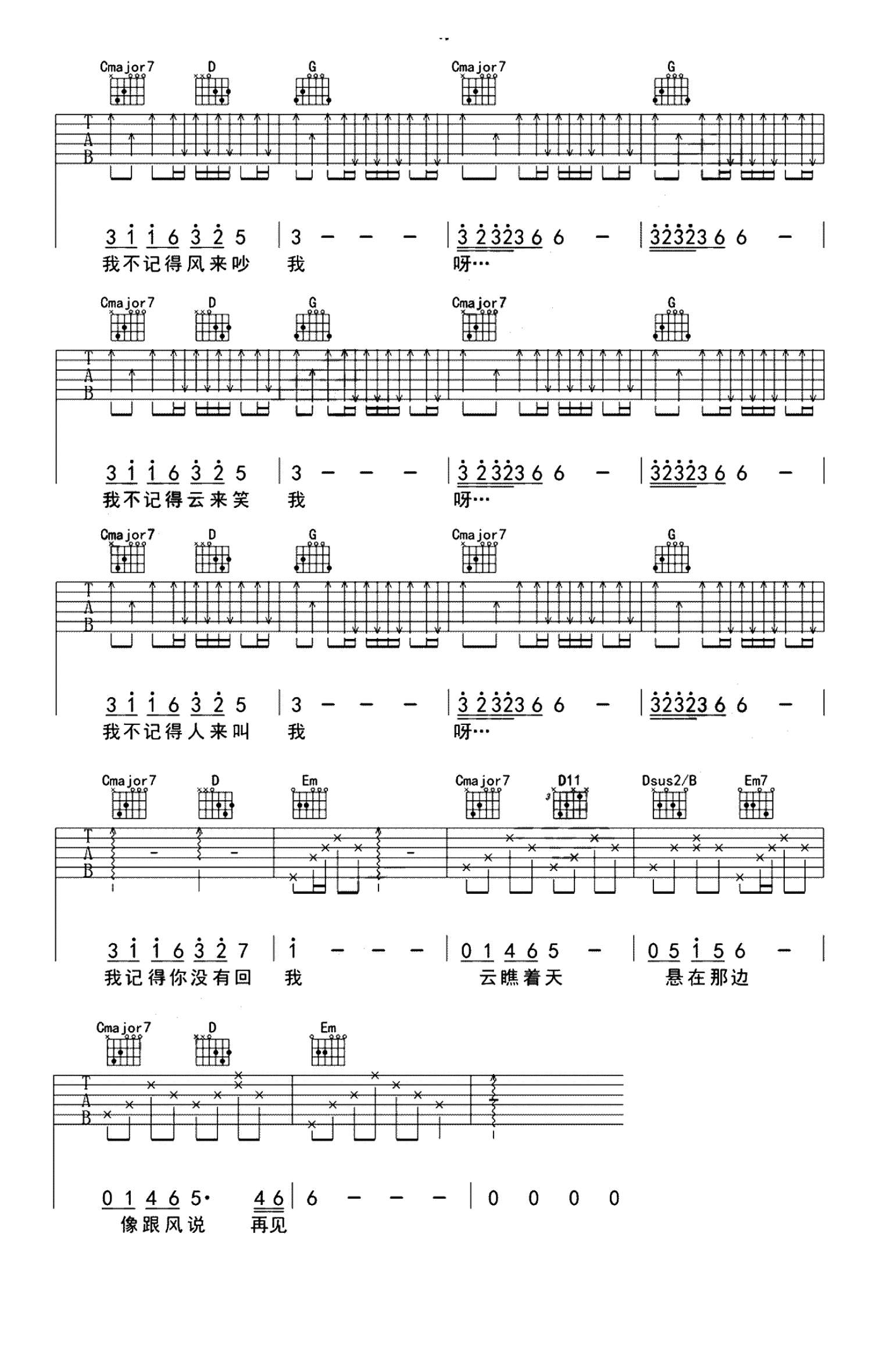 当前位置:琴谱网>吉他弹唱>风去云不回