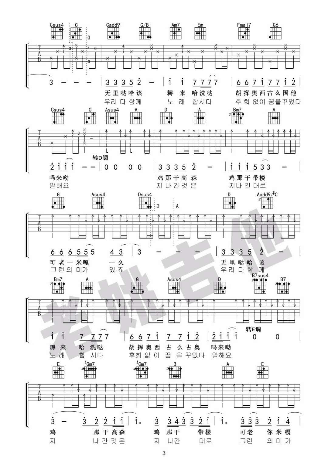 曲谱介绍: 你不要担心《你不要担心_A调》吉他弹唱谱,采用A调指法编配,共有4张高清图谱。