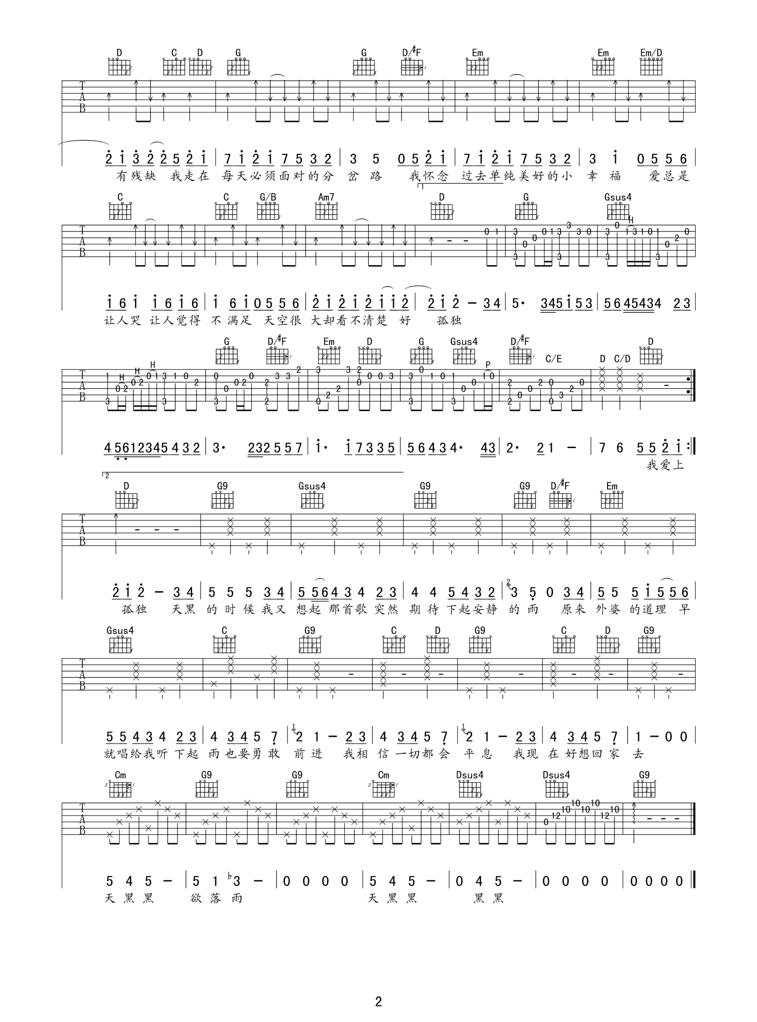 当前位置:琴谱网>吉他弹唱>天黑黑