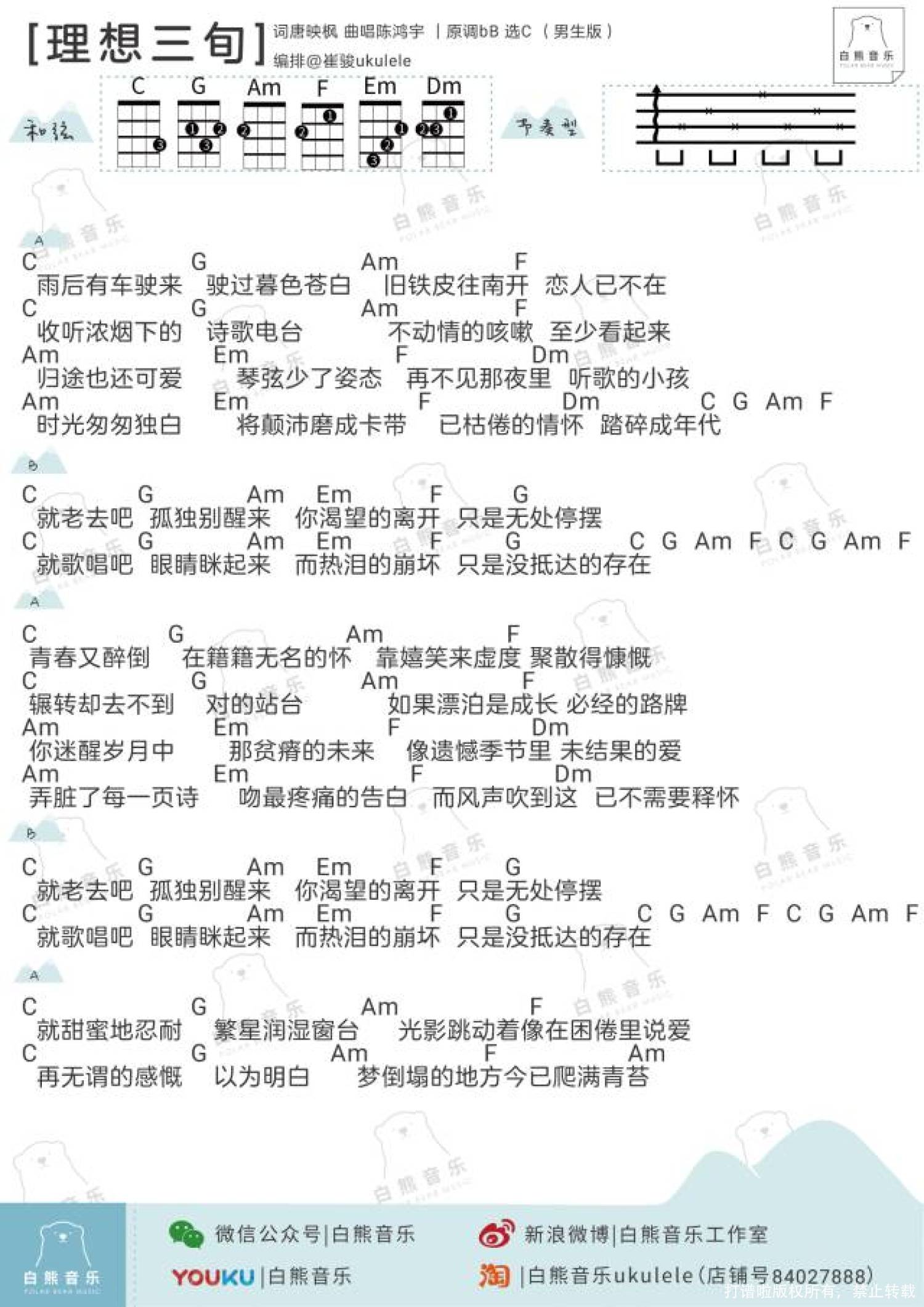 理想三旬尤克里里谱 - 陈鸿宇