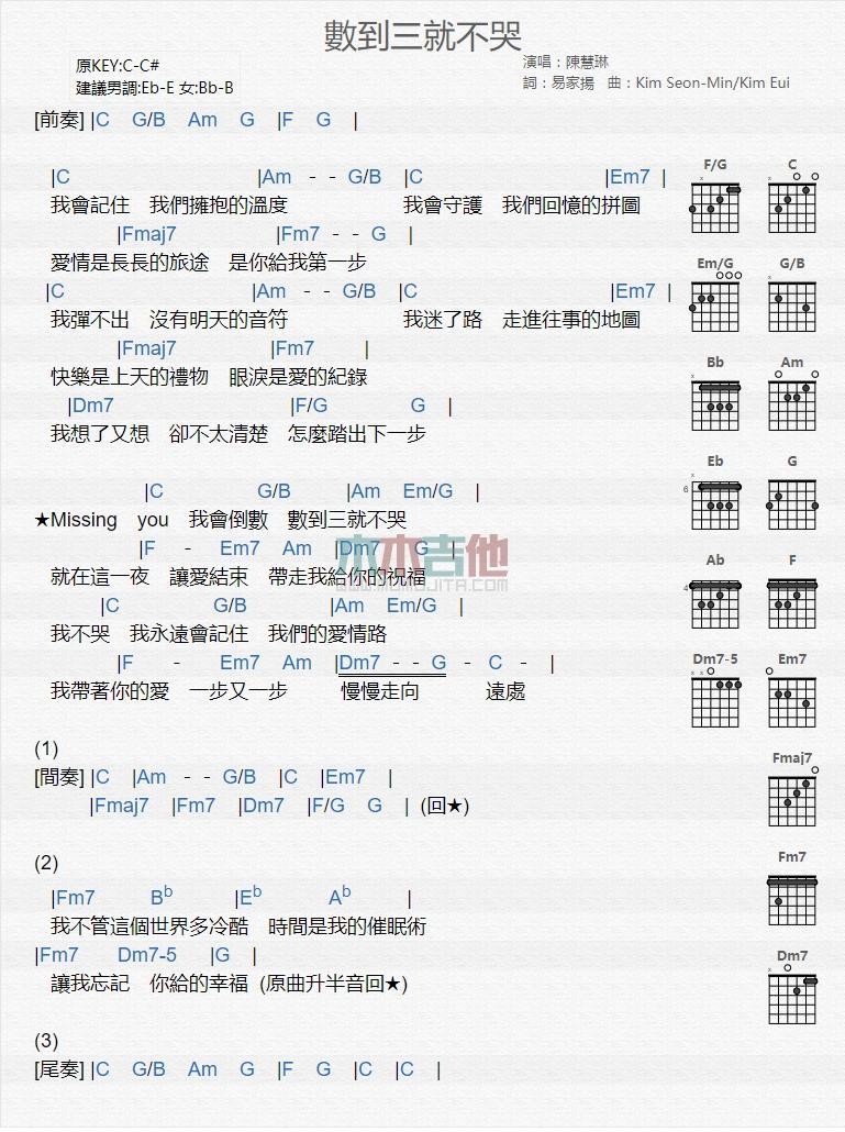 数到三就不哭_吉他谱 - 数到三就不哭 - 吉他弹唱谱