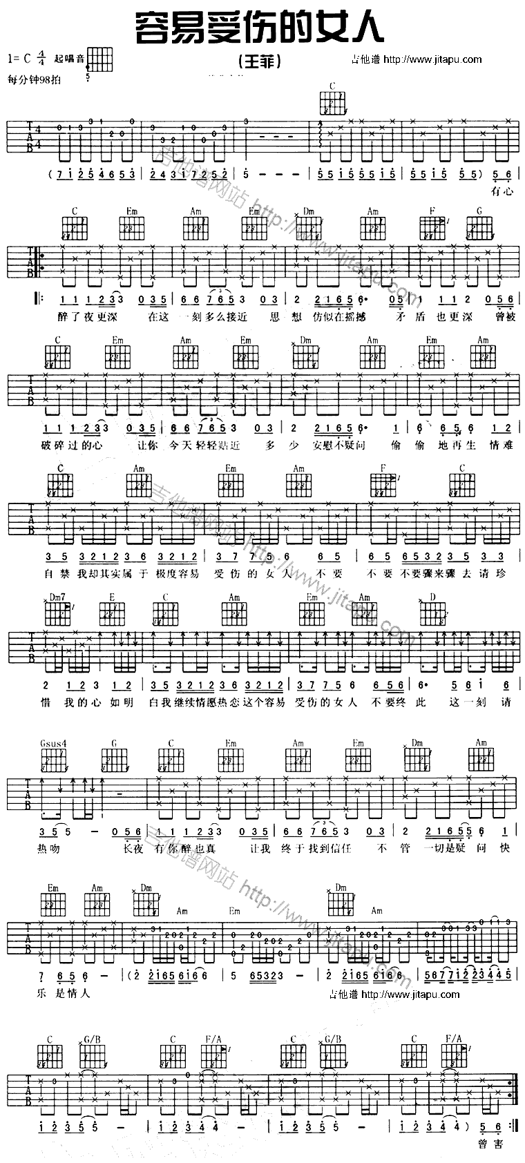 当前位置:琴谱网>吉他弹唱>容易受伤的女人
