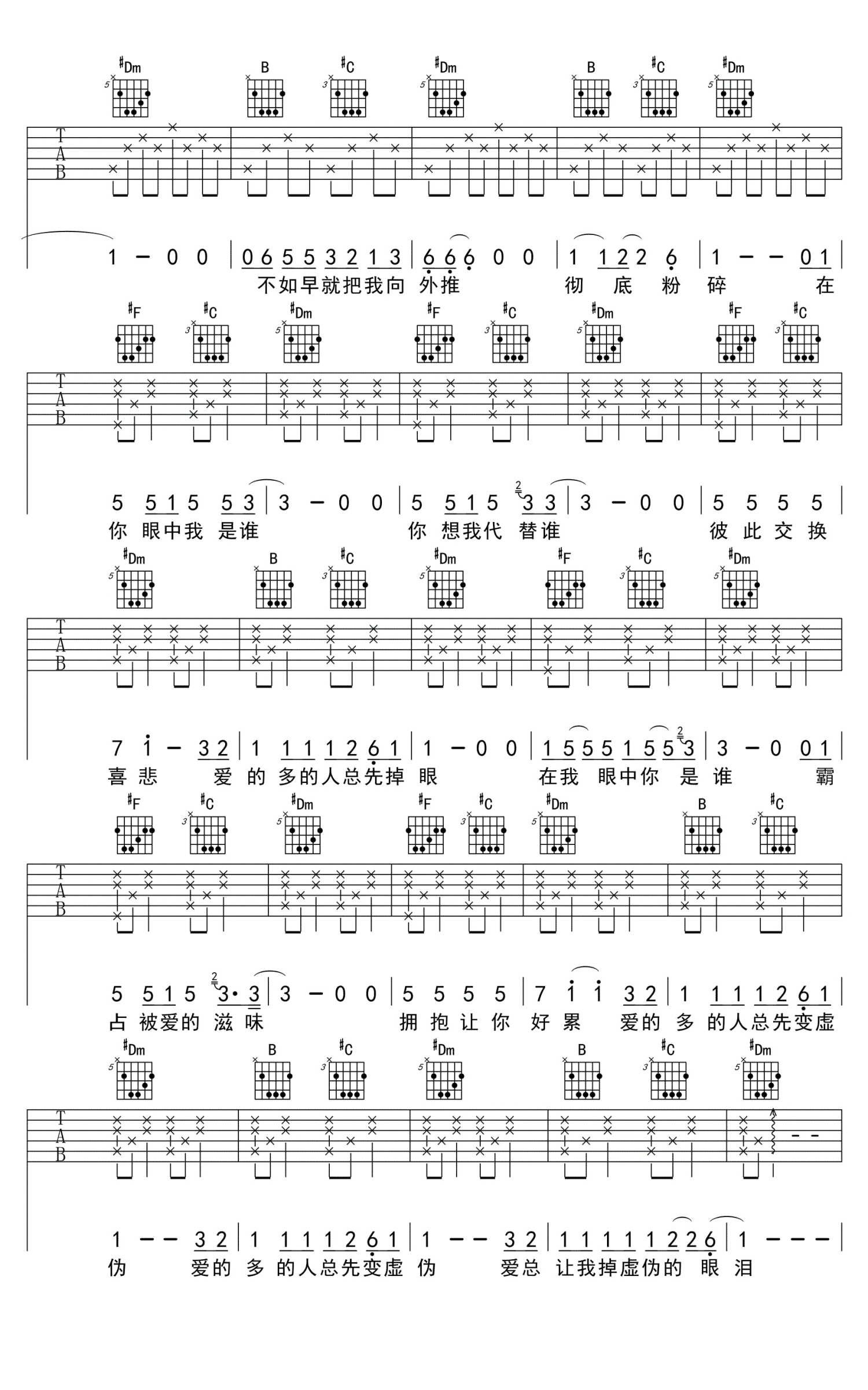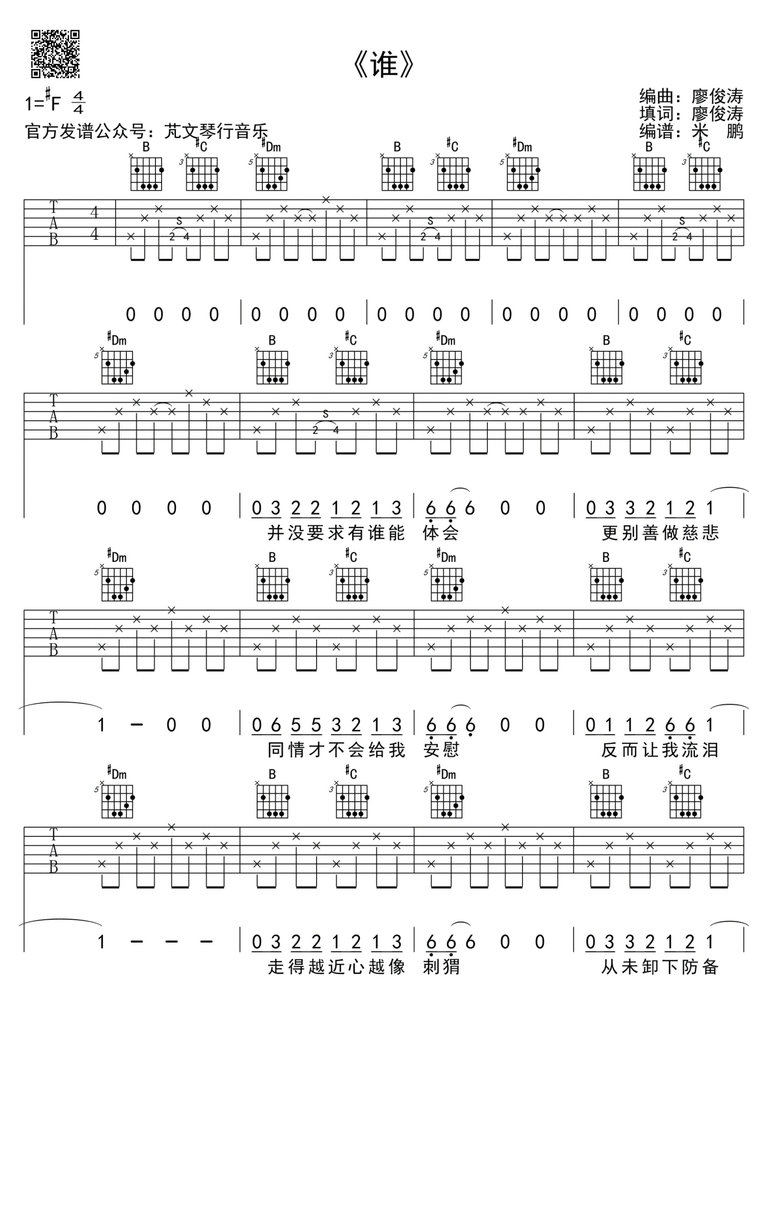 谁吉他谱 - 廖俊涛 - 吉他弹唱谱
