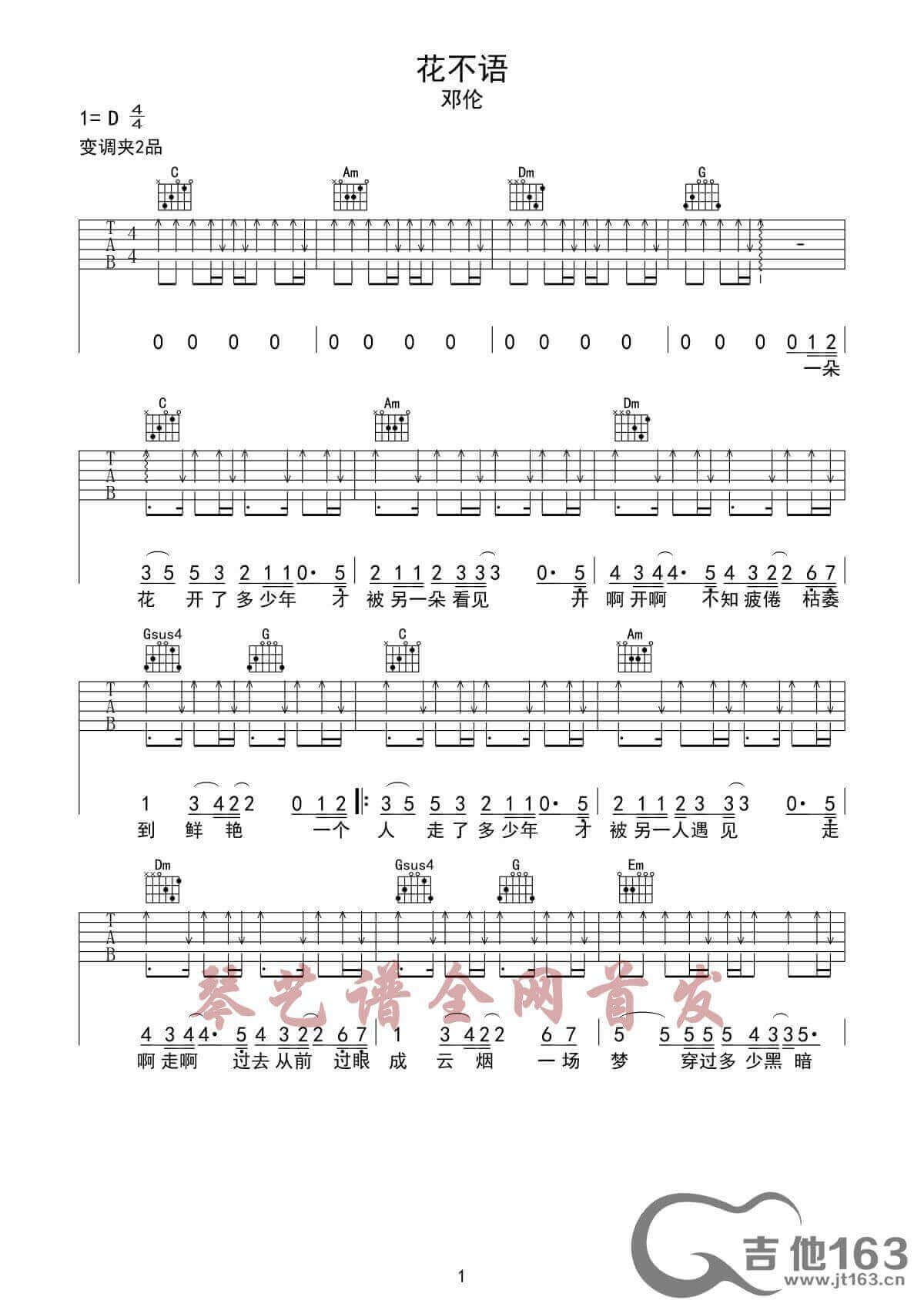 花不语吉他谱 - 邓伦 - D调吉他弹唱谱