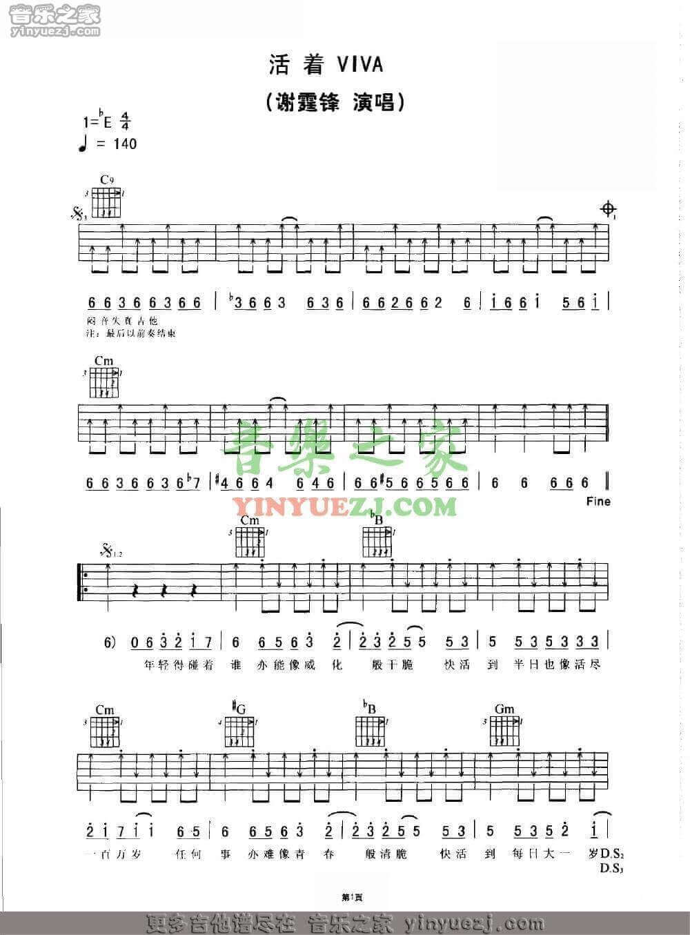 活着viva吉他谱 - 谢霆锋 - E调吉他弹唱谱