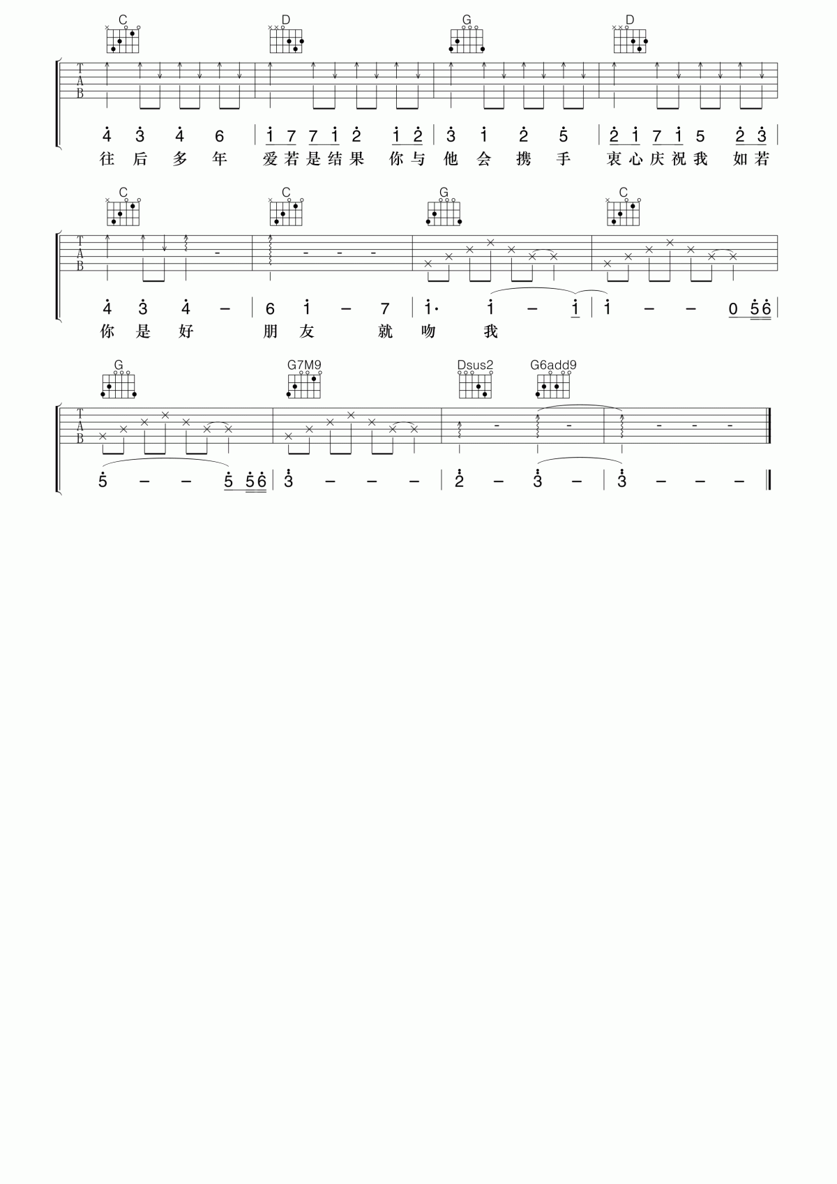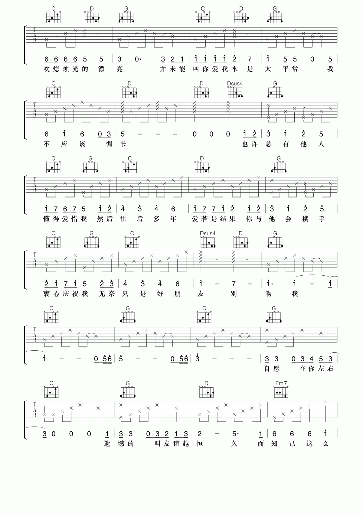 梁汉文 好朋友吉他谱 - 梁汉文 - 吉他弹唱谱