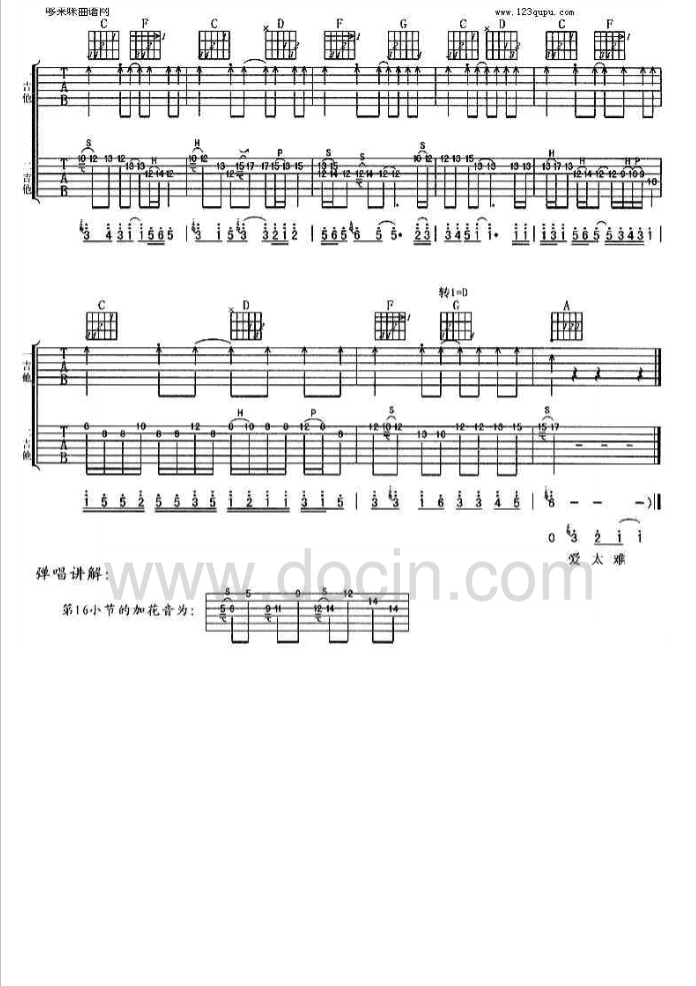当前位置:琴谱网>吉他弹唱>爱太难
