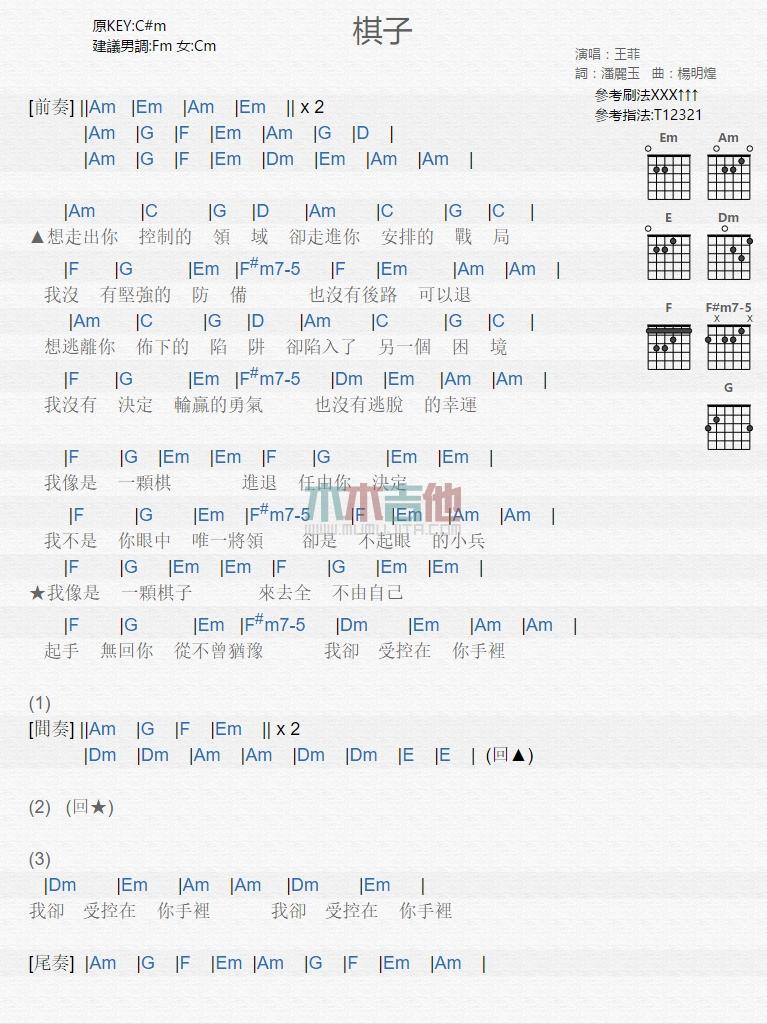 当前位置:琴谱网>吉他弹唱>棋子_