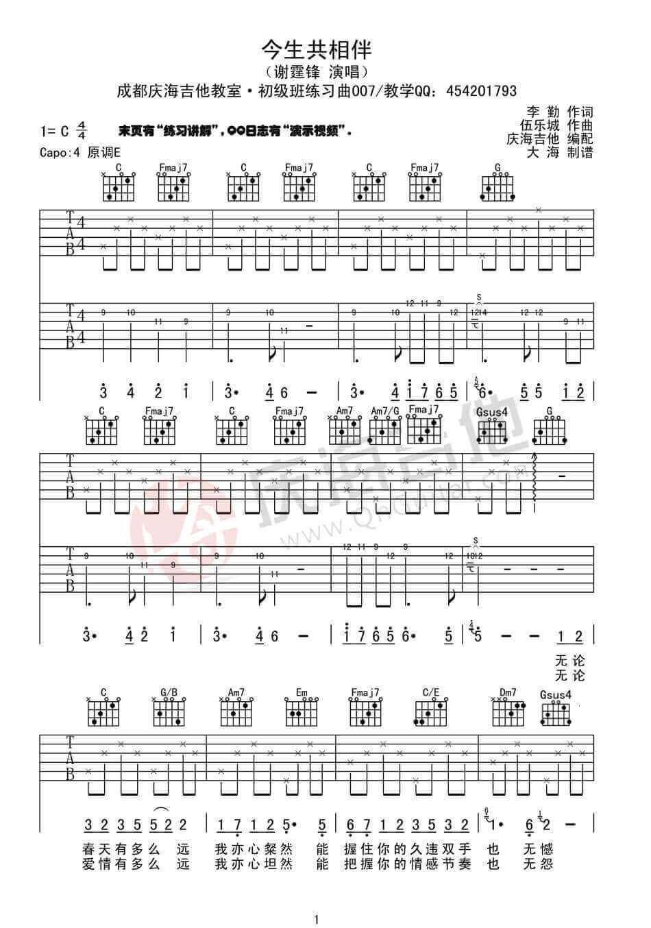 当前位置:琴谱网>吉他弹唱>今生共相伴