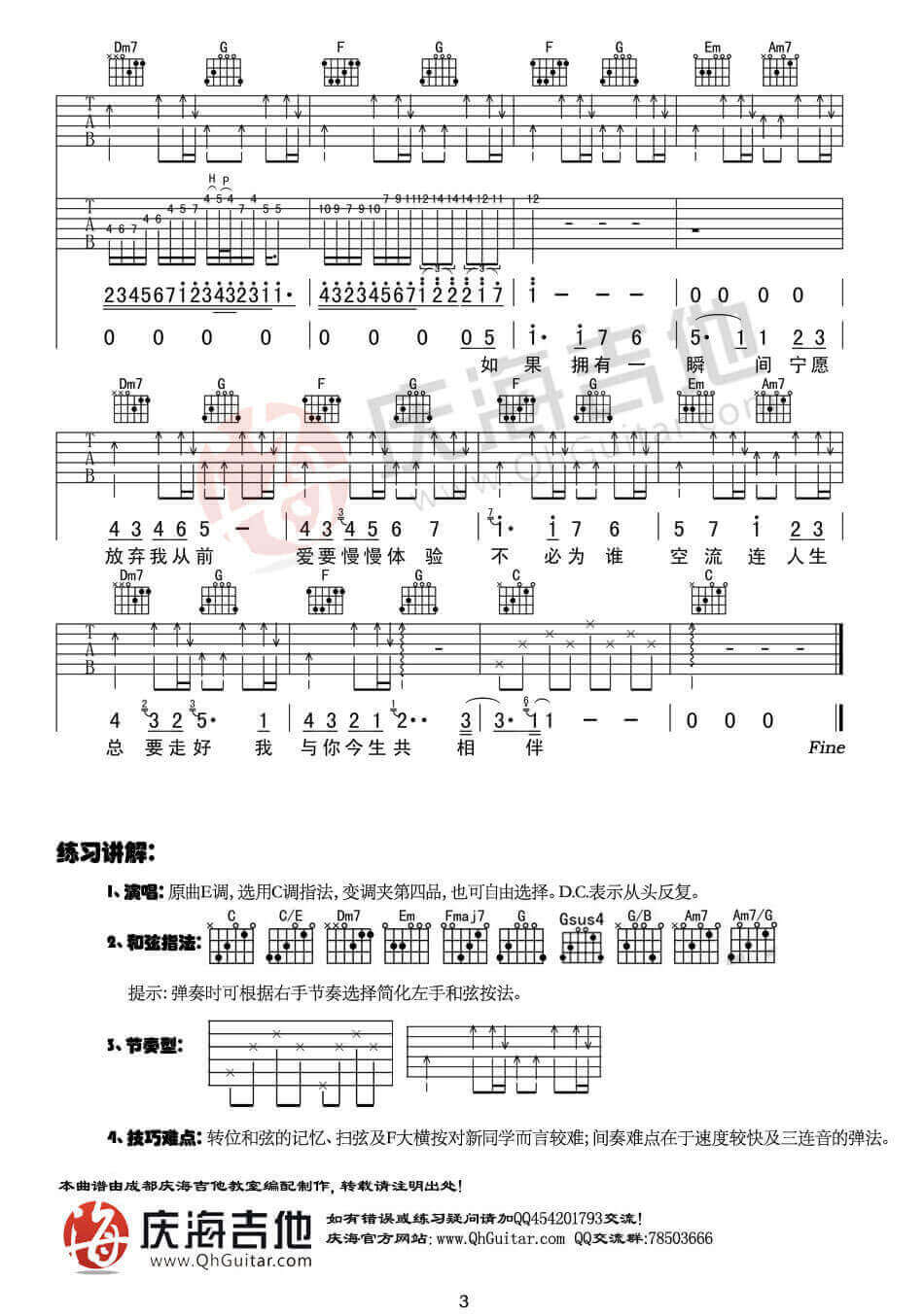 曲谱介绍: 今生共相伴吉他谱采用了B调指法,由庆海吉他编配完成。谢霆锋的演唱能力我们是有目共睹的,这首歌曲同样也受到了很多人的支持和喜爱。这首像叶子一样飞吉他谱也很帅,快点去学习吧,没学会的小伙伴要继续加油喔,稳!