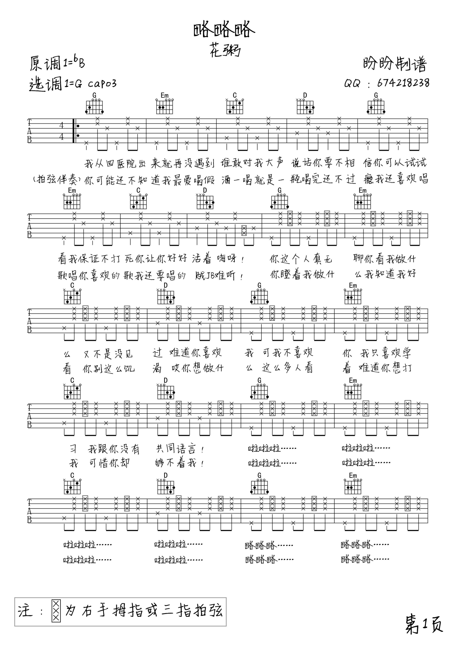 略略略吉他谱 - 花粥 - G调吉他弹唱谱