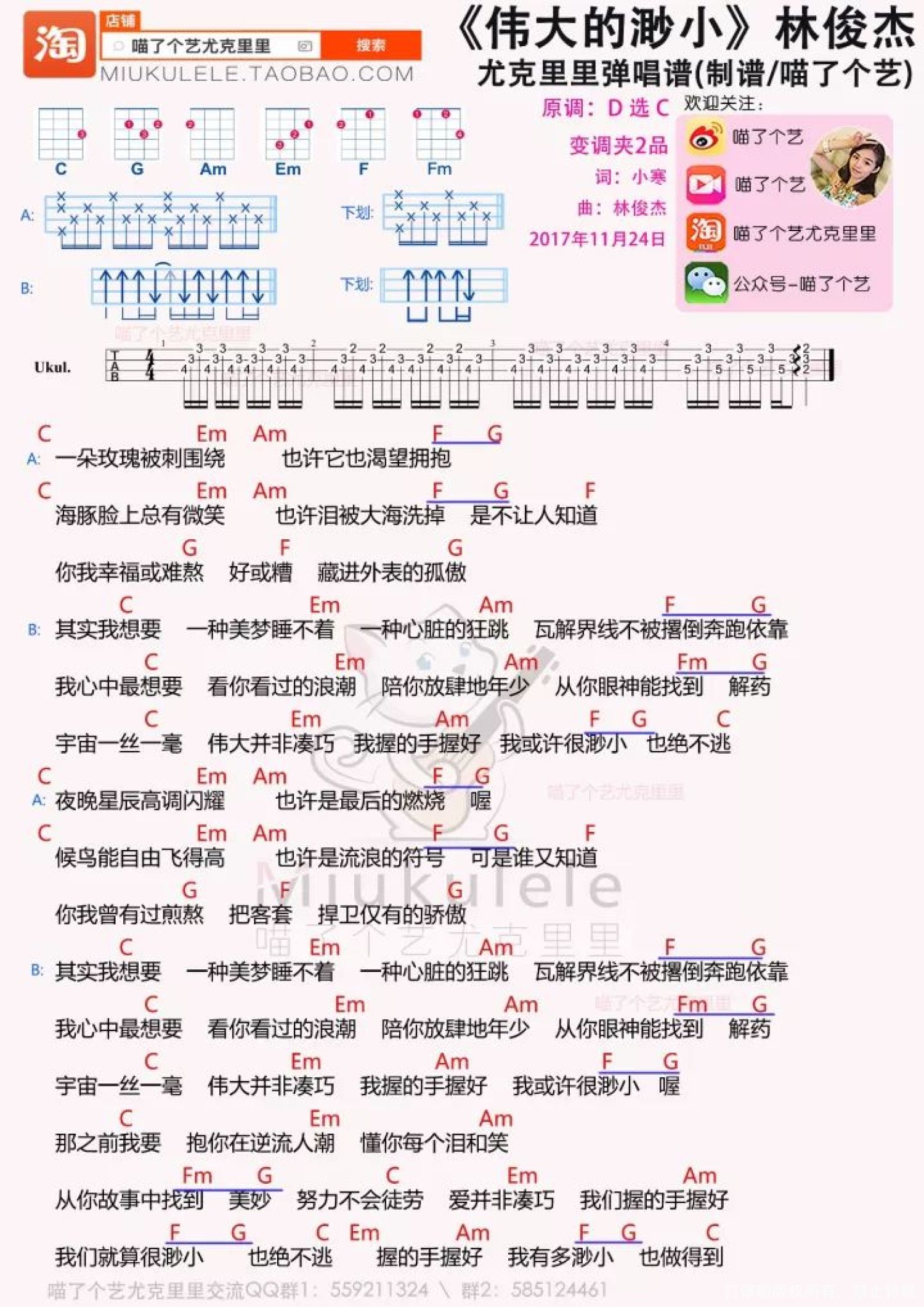 曲谱介绍: 《伟大的渺小》尤克里里弹唱谱